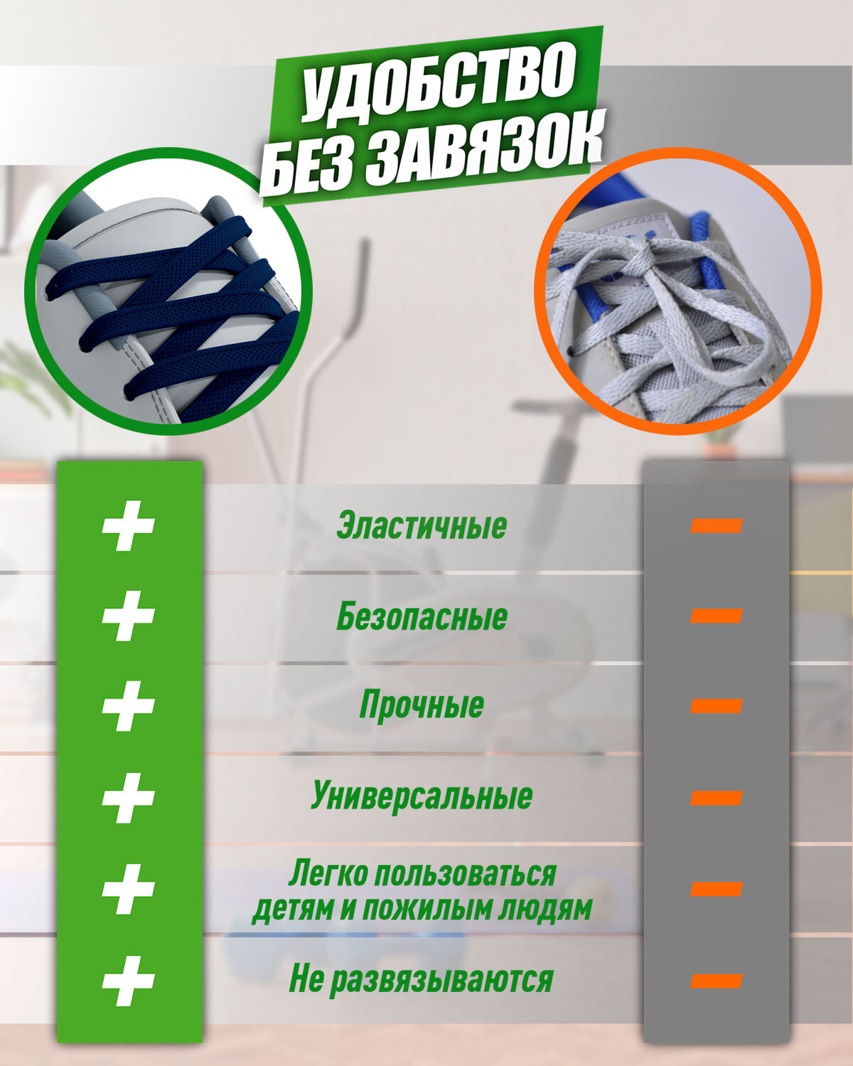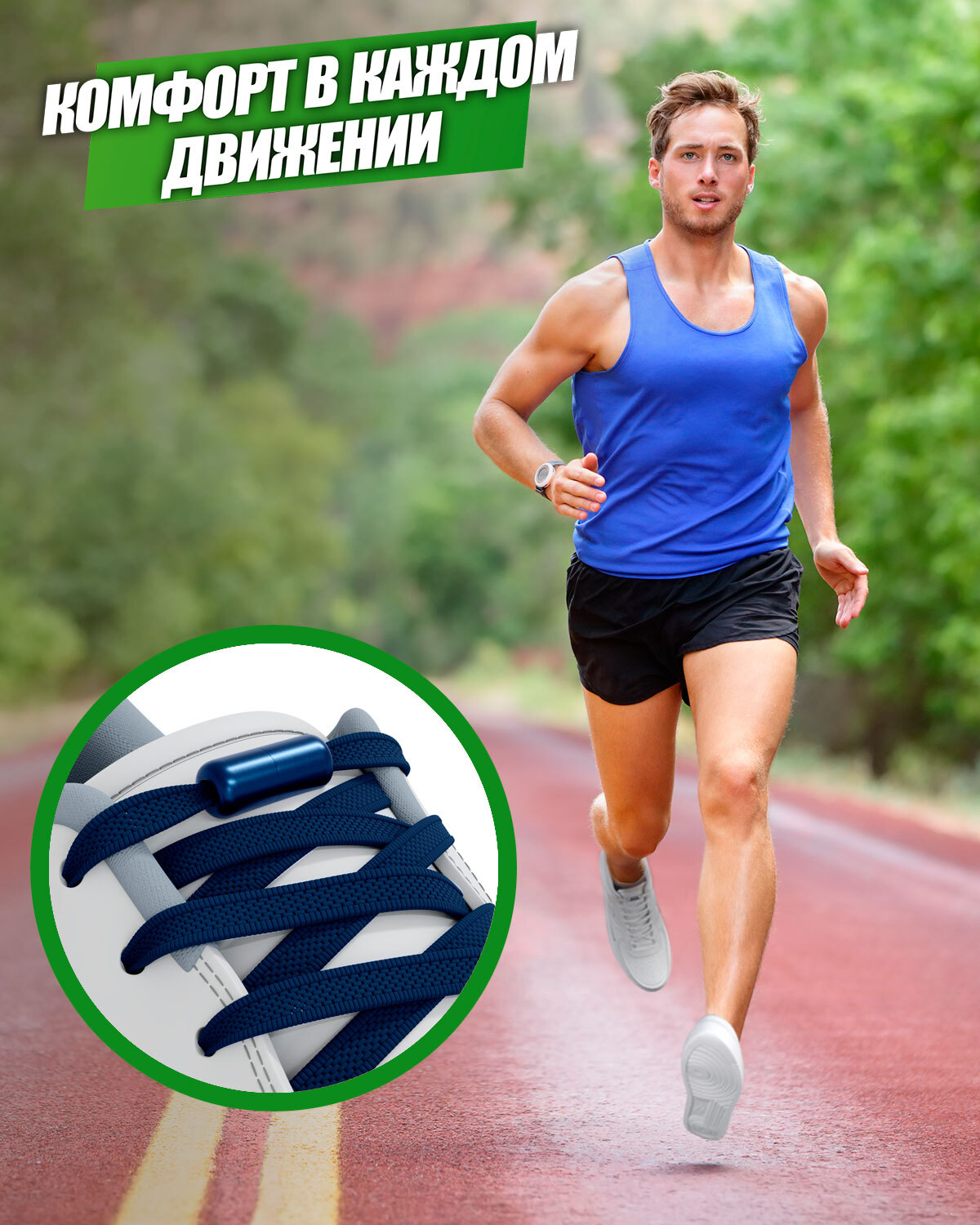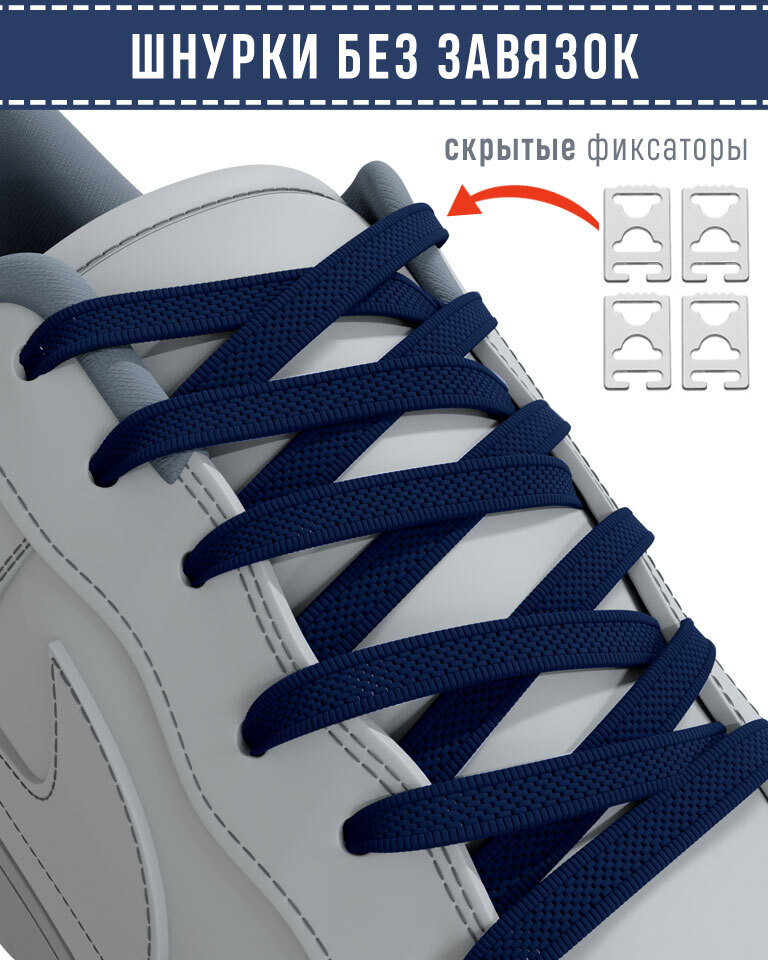 КРОССОВЕР/ Шнурки для обуви синие / шнурки эластичные с фиксатором / резиновые шнурки для обуви / без завязок / для детей / лентяйки