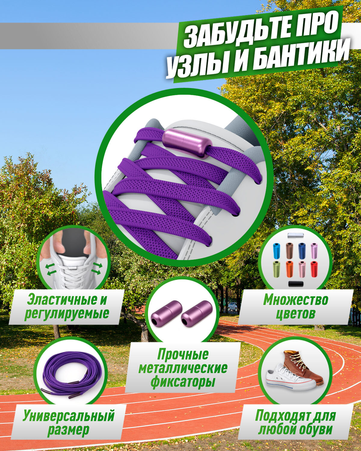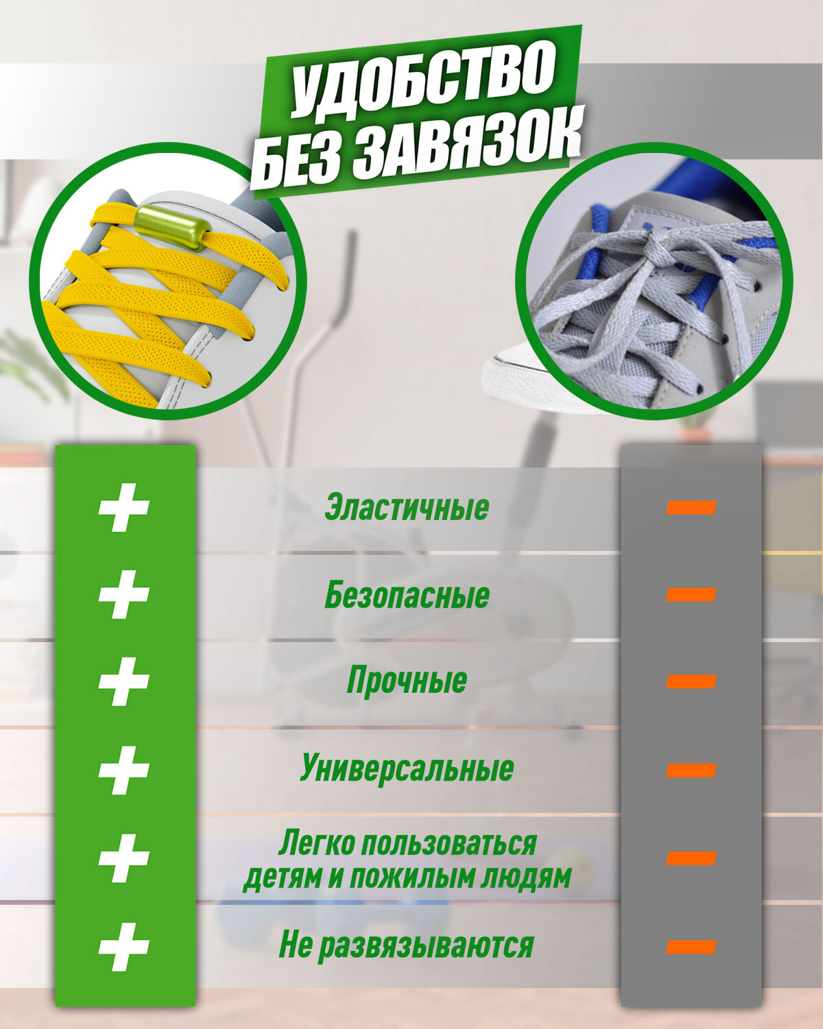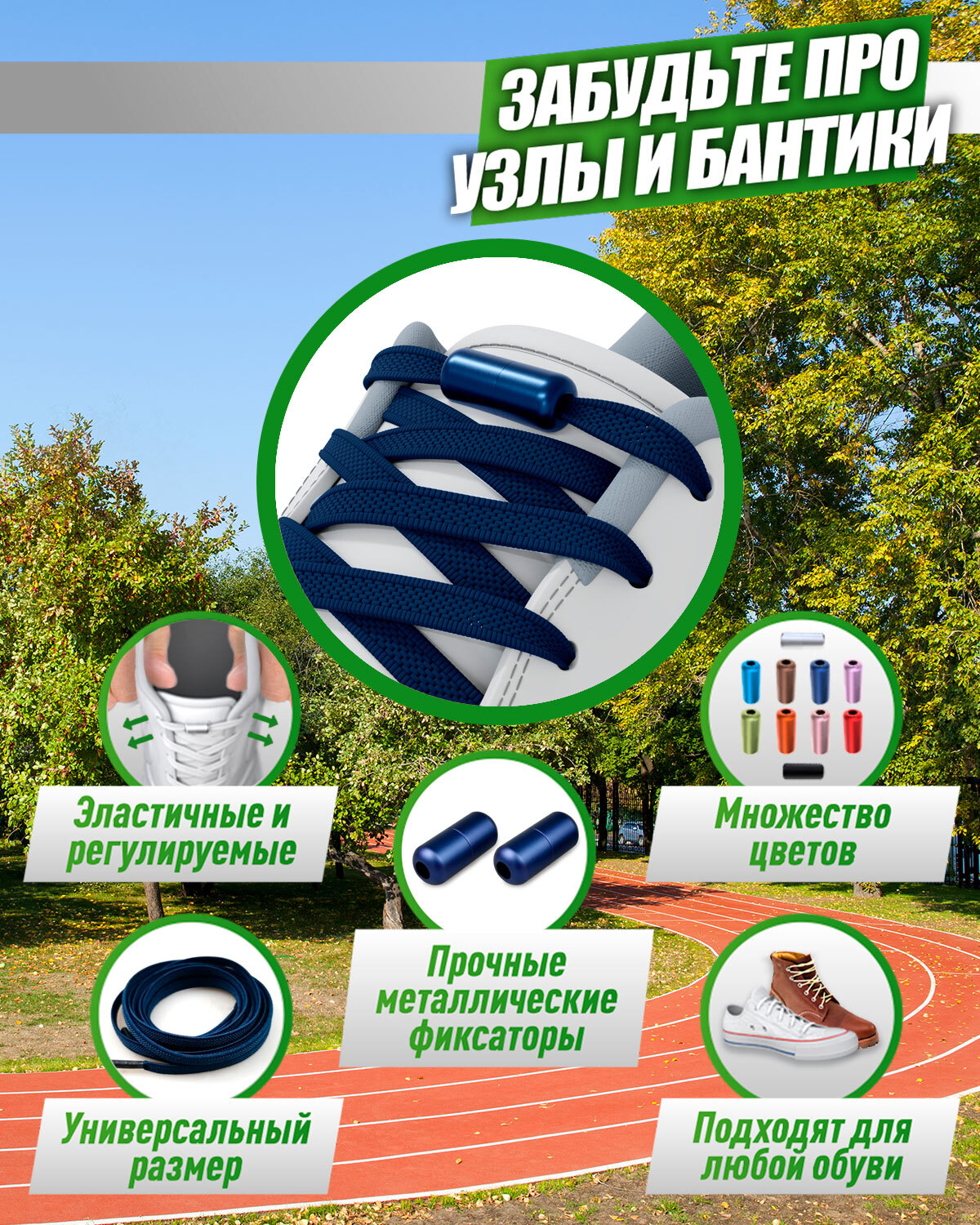 КРОССОВЕР/ Шнурки для обуви синие / шнурки эластичные с фиксатором / резиновые шнурки для обуви / без завязок / для детей / лентяйки