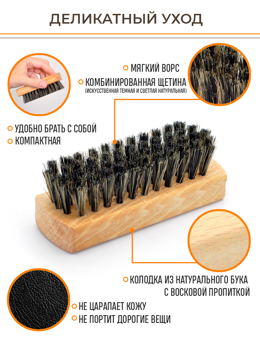 КРОССОВЕР / Мягкая щетка для чистки обуви компакт (10 см) / для полировки и нанесения крема и воска