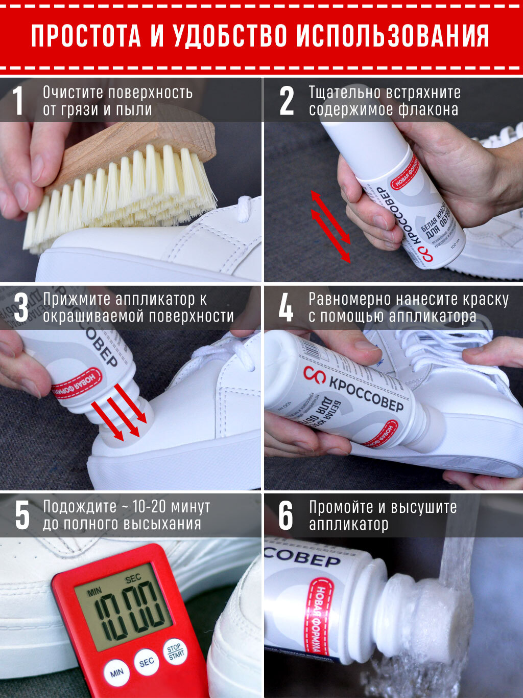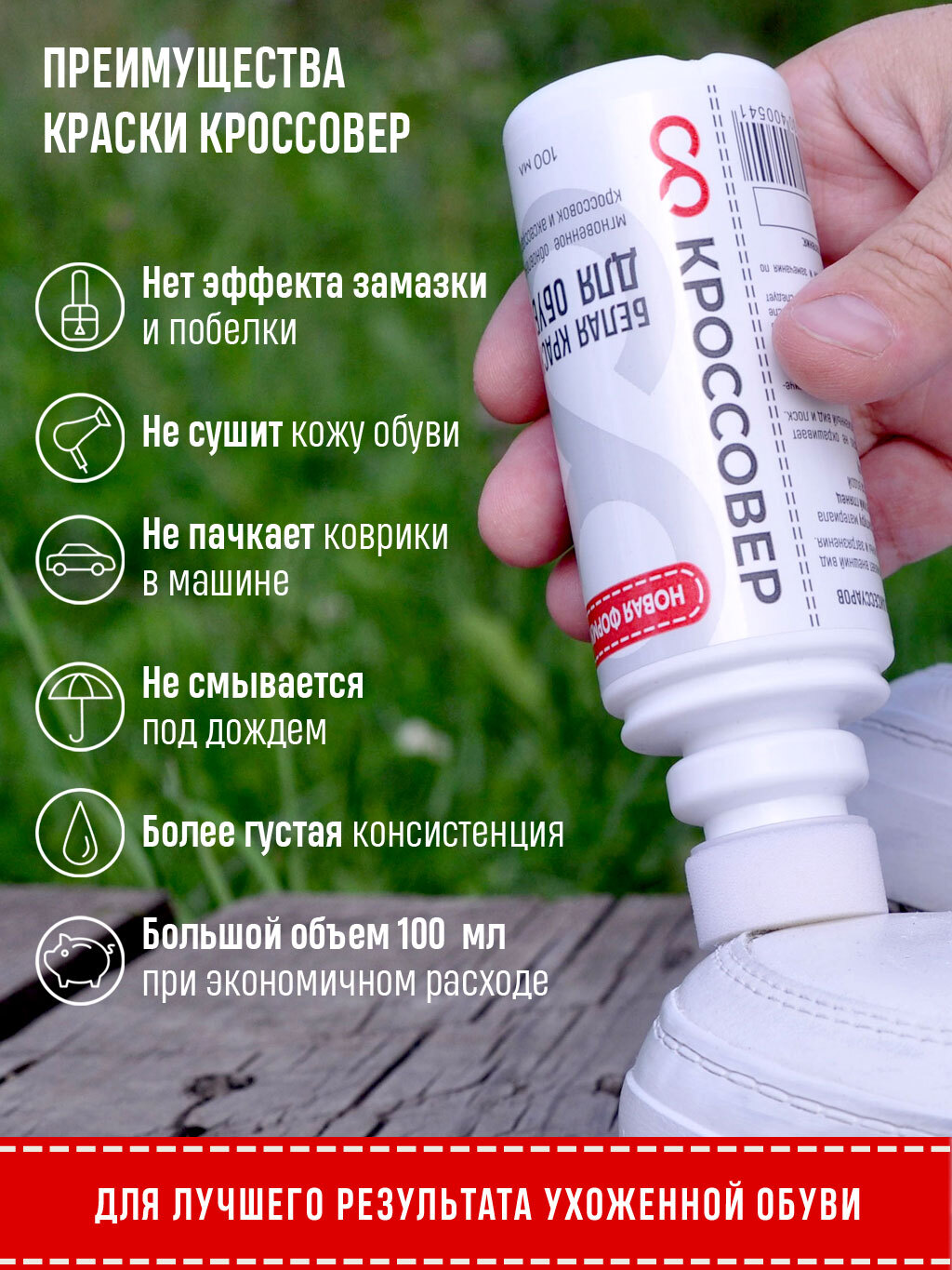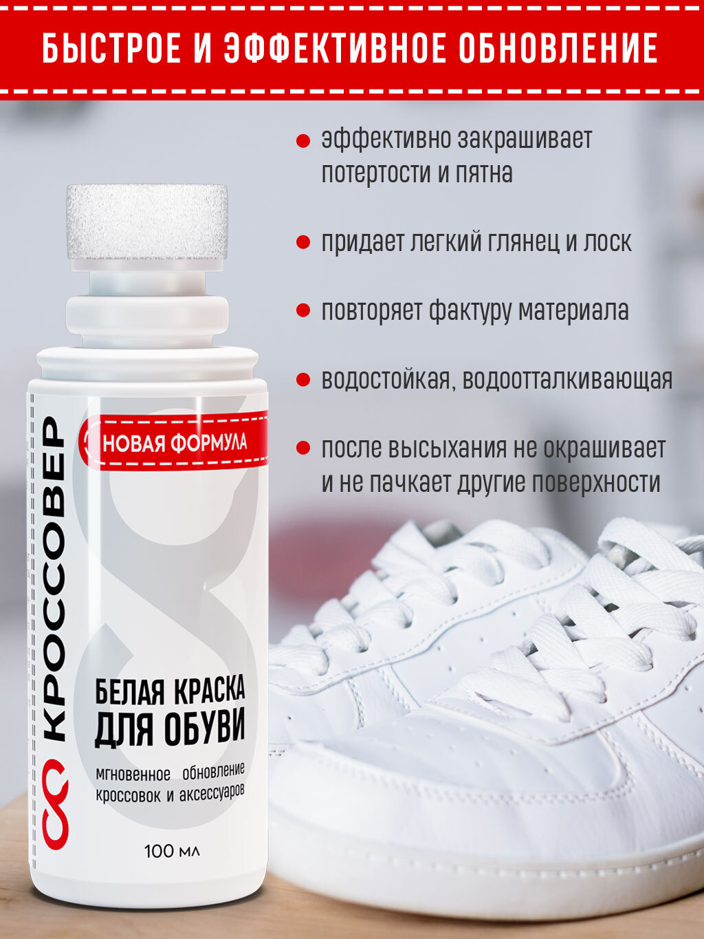 КРОССОВЕР / Белая краска для обуви из кожи и синтетики / краска для белых кроссовок / для обновления подошвы