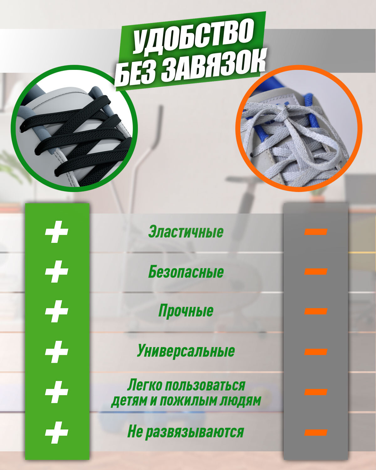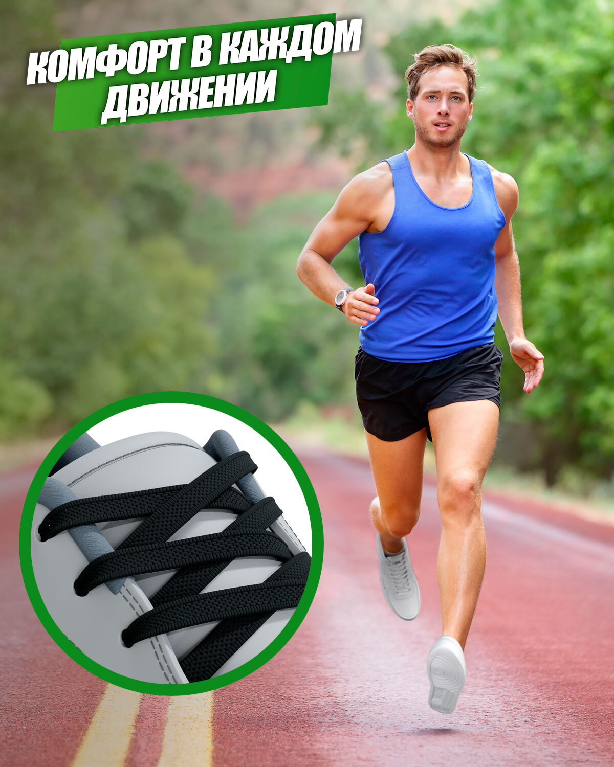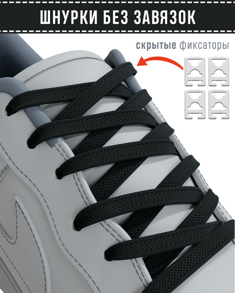 КРОССОВЕР/ Шнурки для обуви черные / шнурки эластичные с фиксатором / резиновые шнурки для обуви / без завязок / для детей / лентяйки