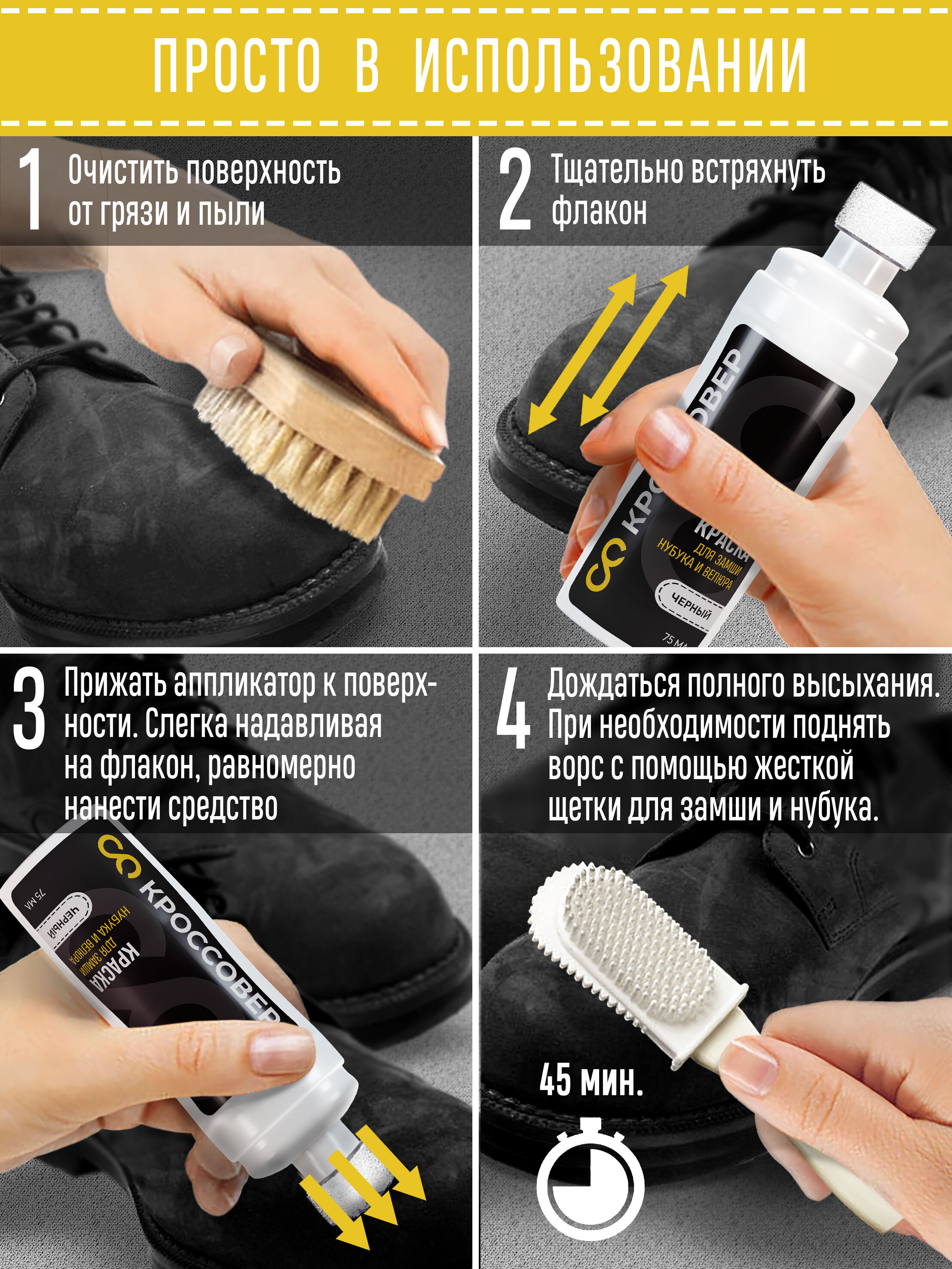 КРОССОВЕР / Краска для обуви черная / краска для замши черная / закраска для обуви из нубука и велюра