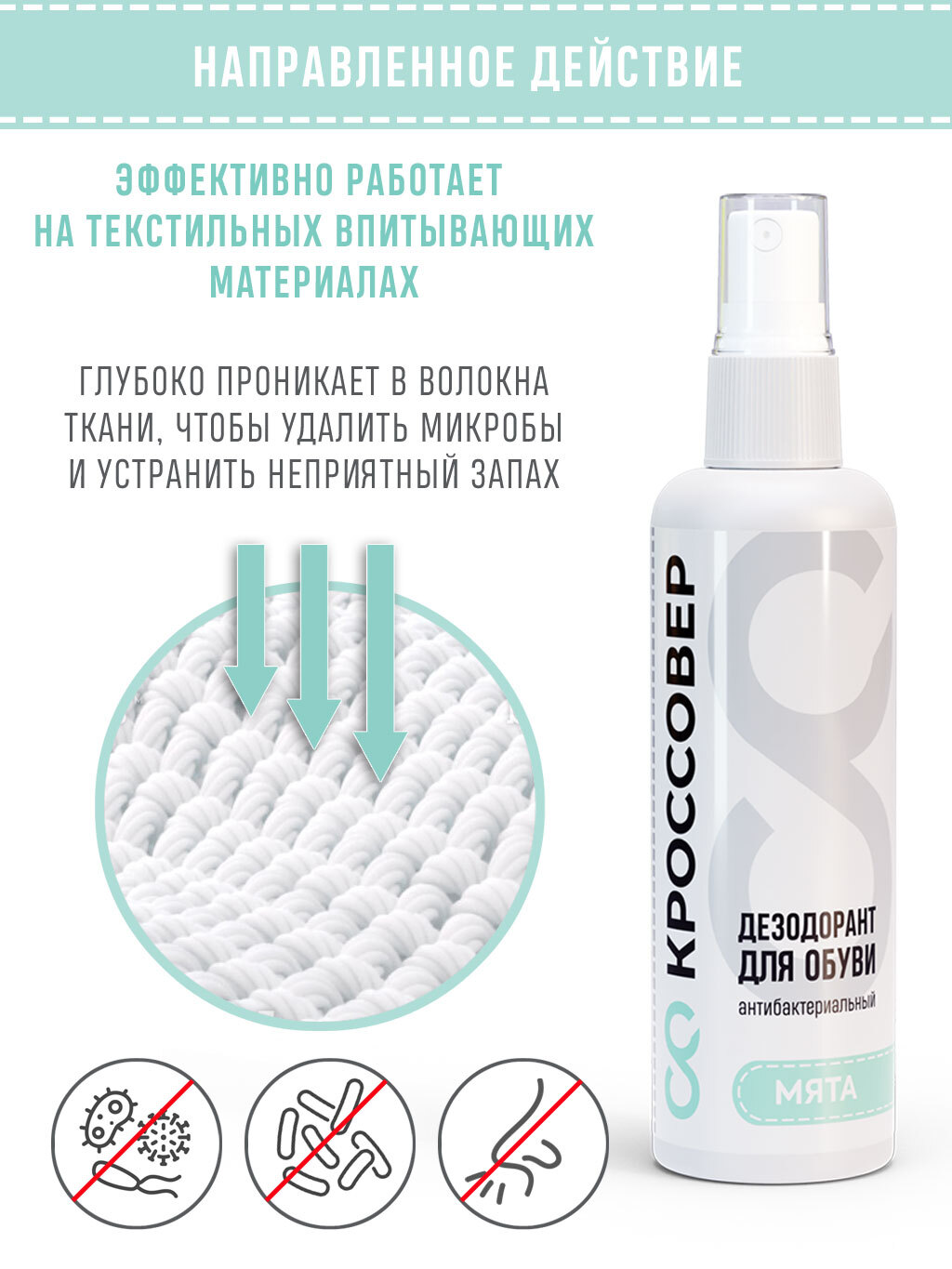 КРОССОВЕР / Антибактериальный освежающий дезодорант для обуви Мята / дезодорант для ног / нейтрализатор запаха