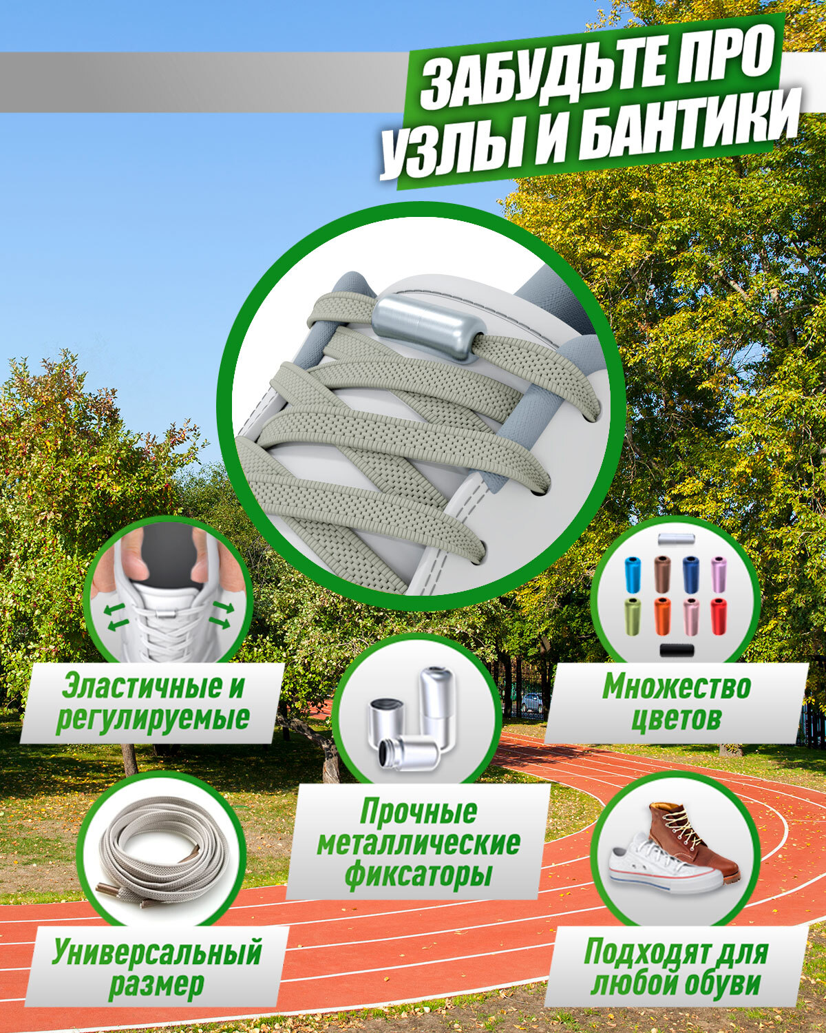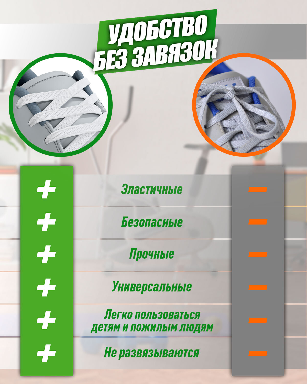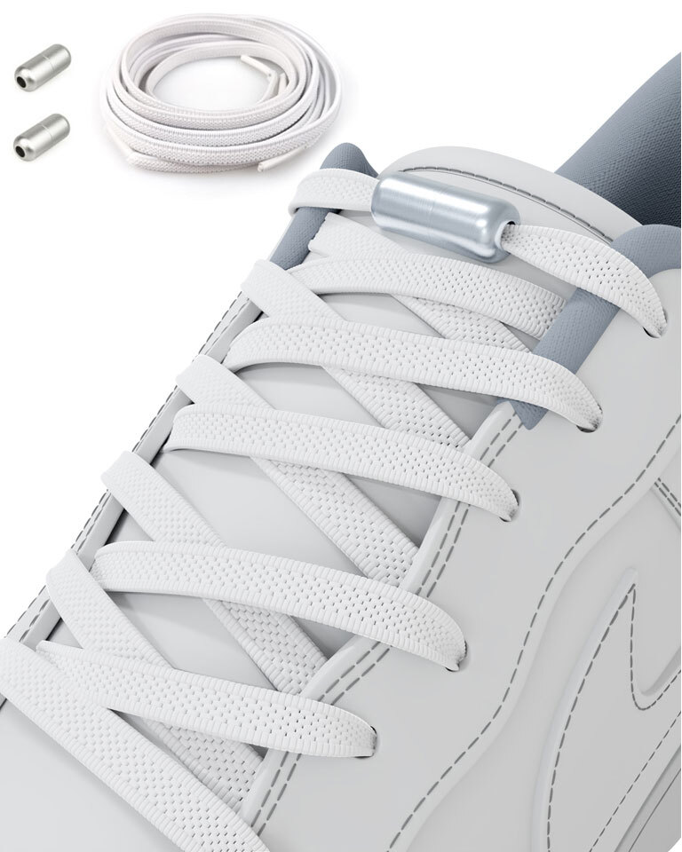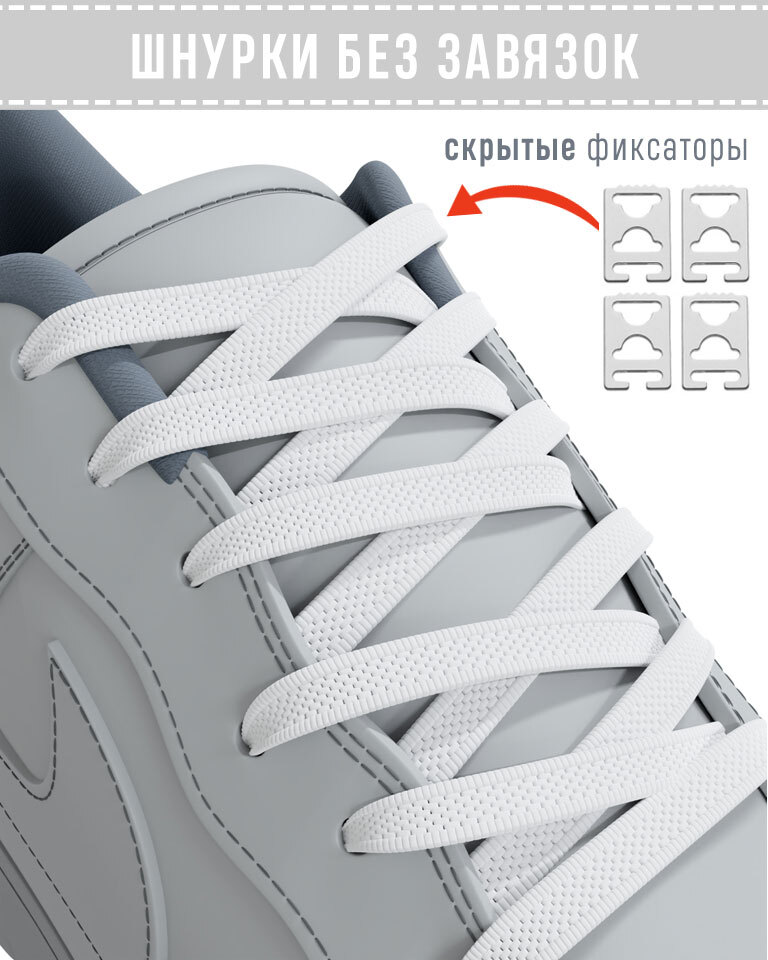 КРОССОВЕР/ Шнурки белые / шнурки эластичные с фиксатором / резиновые шнурки для обуви / без завязок / для детей / лентяйки