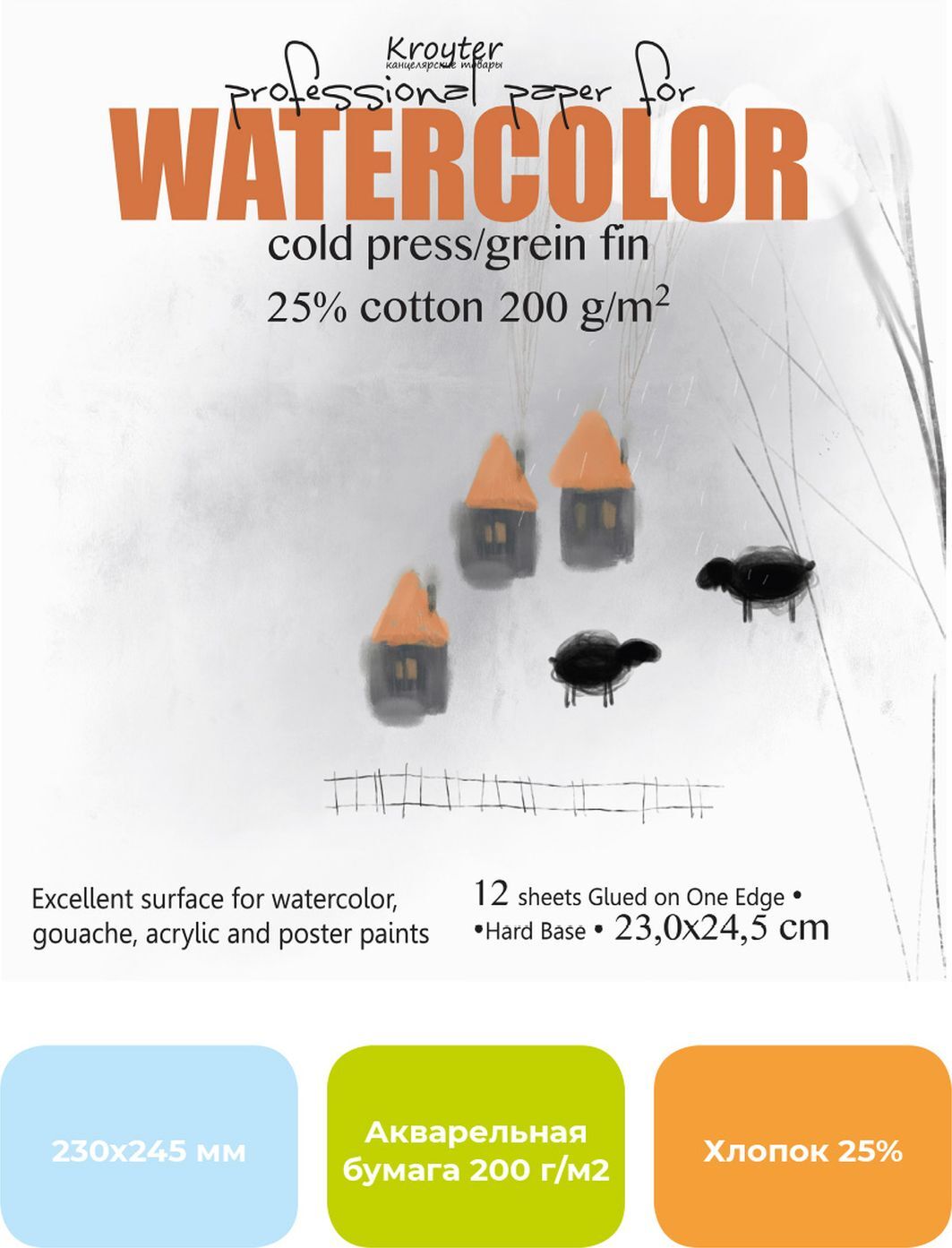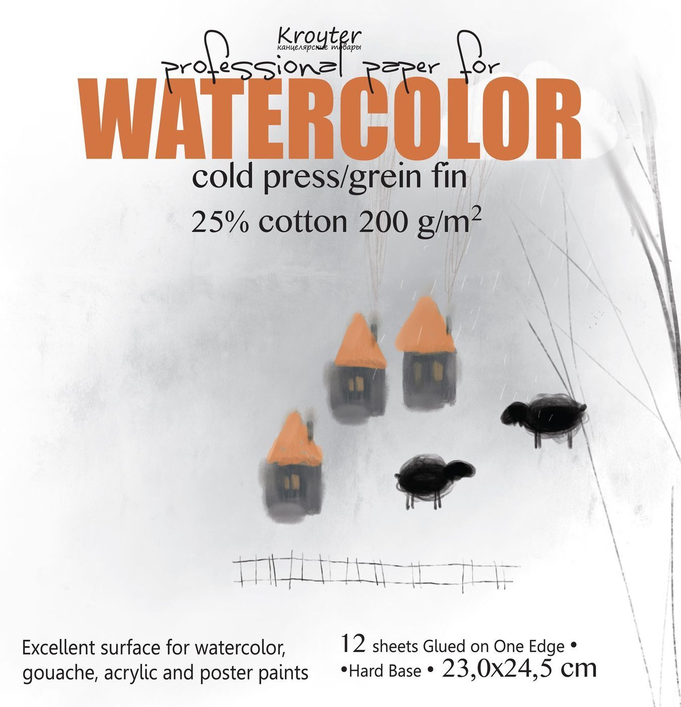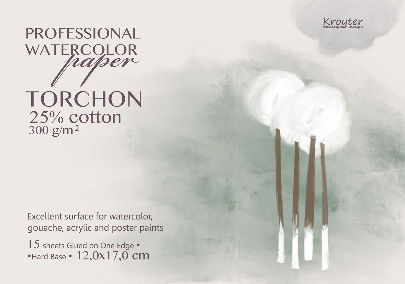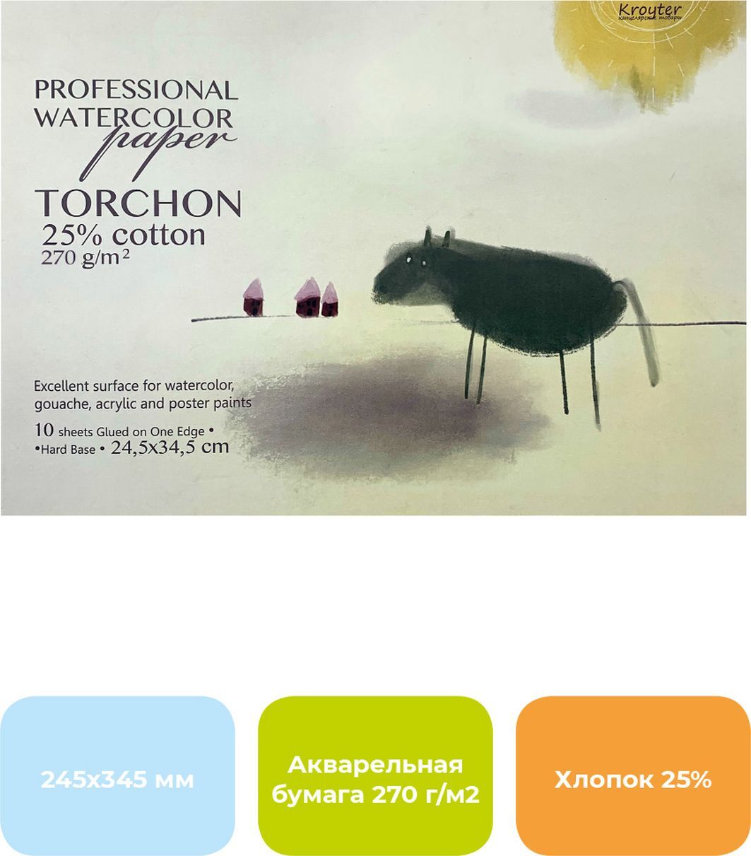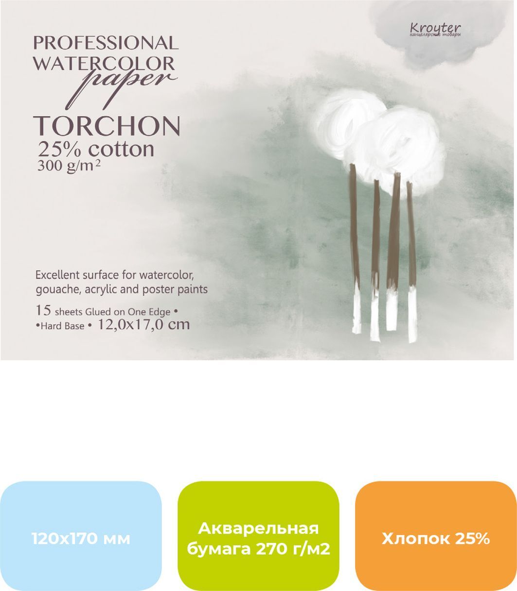 Альбом для рисования Kroyter Torchon, для акварели, 1169765, белый, формат 245 х 345 мм, 10 листов