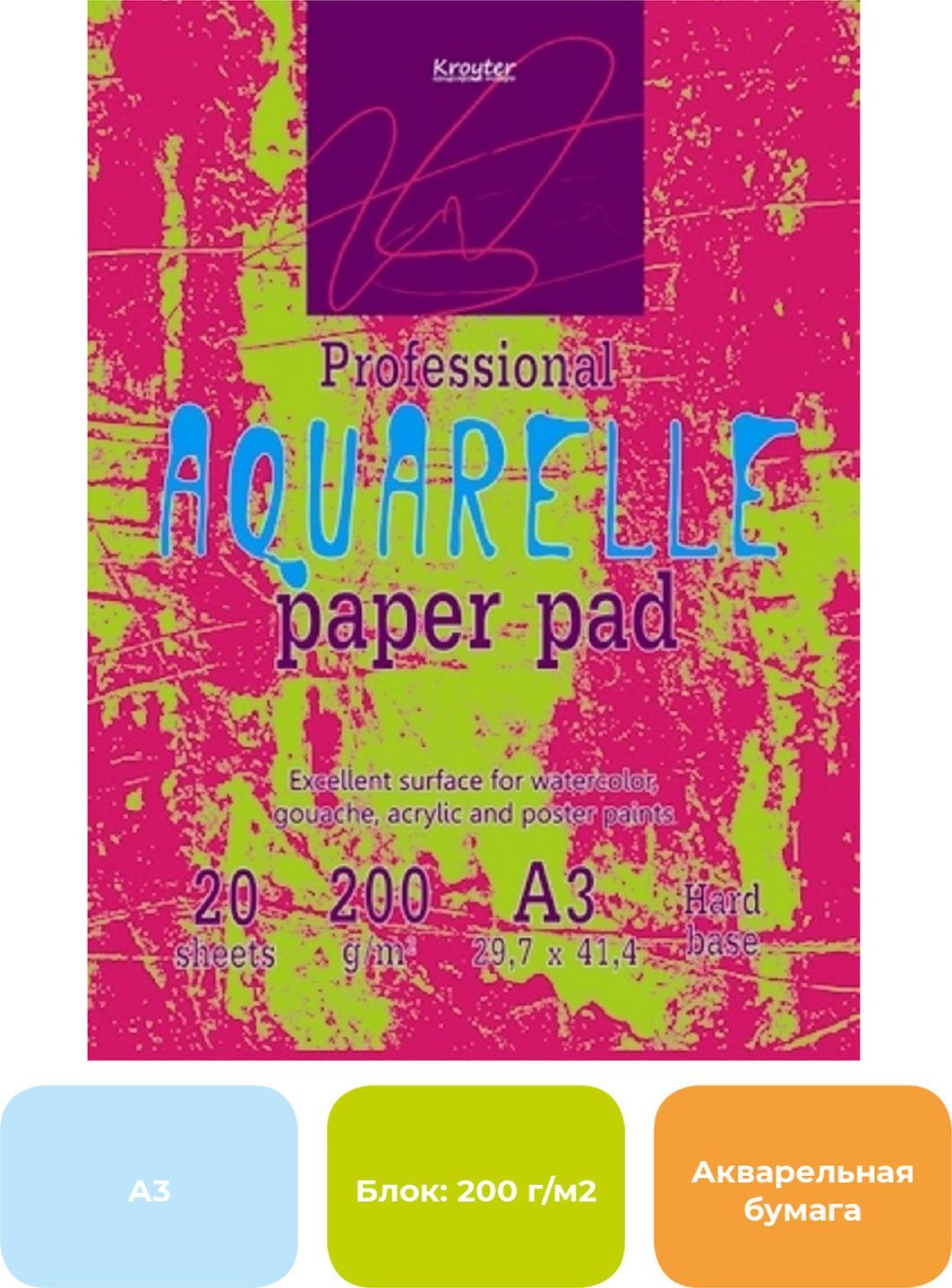 Альбом для рисования, альбом для акварели, бумага для акварели, Kroyter, А3,20 листов