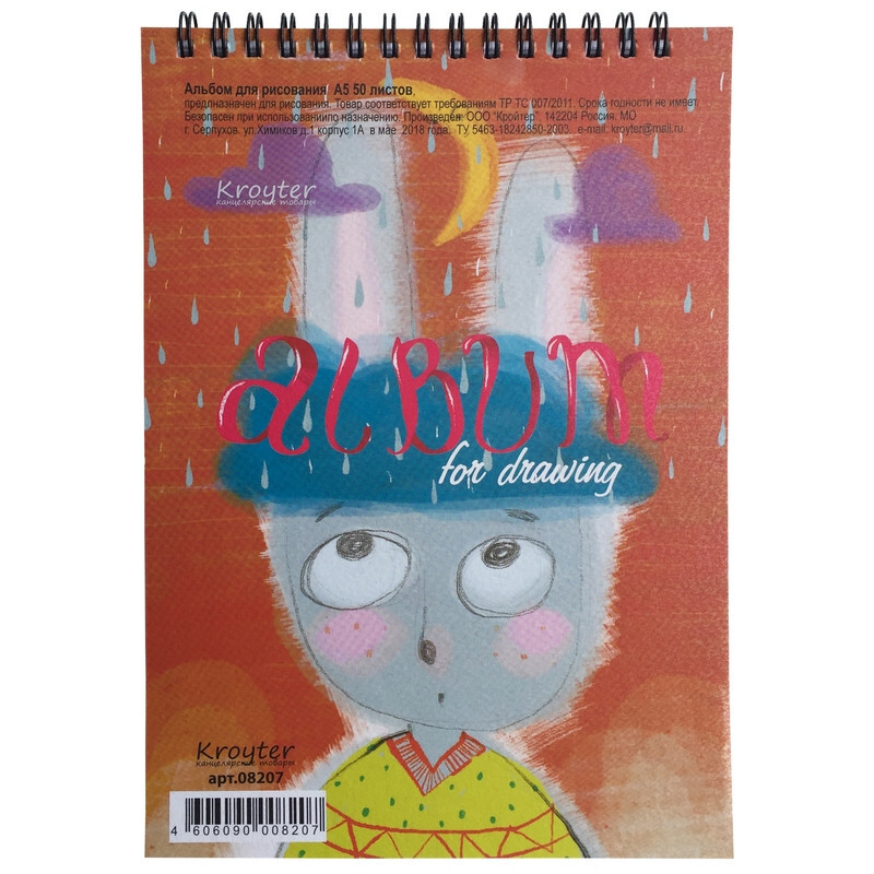 Альбом для рисования Kroyter 50л А5,спираль Зайка 08207