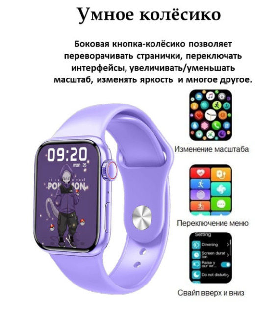 Умные часы KUPLACE / Смарт-часы M16 Plus / Smart watch M16+ с активным колесиком и боковой кнопкой / Смарт вотч М16+, 44mm, розовый