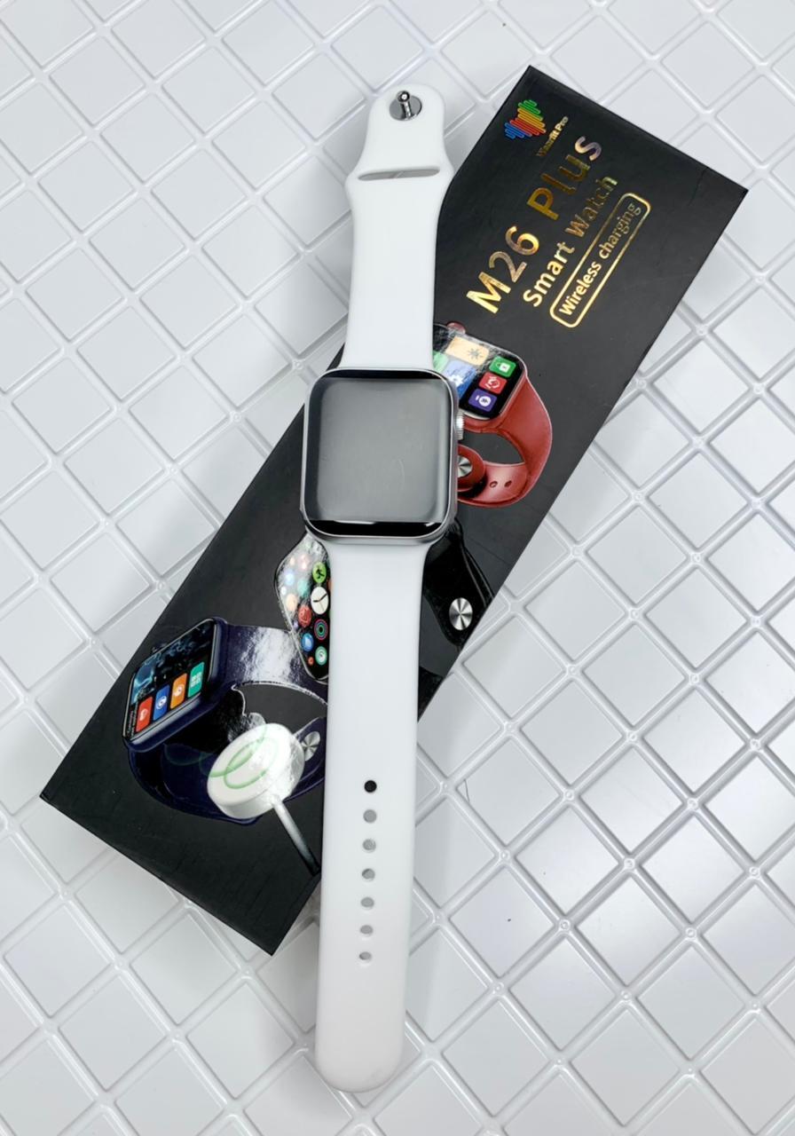 Умные часы KUPLACE / Smart Watch M26 Plus / Смарт-часы M26 Plus с активной кнопкой и беспроводной зарядкой / Смарт вотч М26+, 44mm, белый