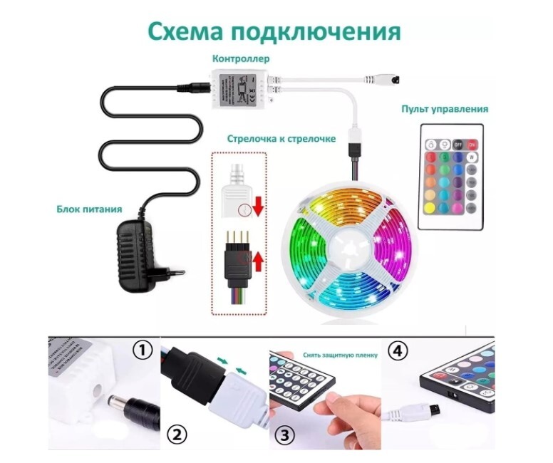 Светодиодная лента KUPLACE 5м, 12В, IP65, 60 LED/m / SMD STRIP 5 метров / Цветная LED лента с пультом управления, теплый белый свет