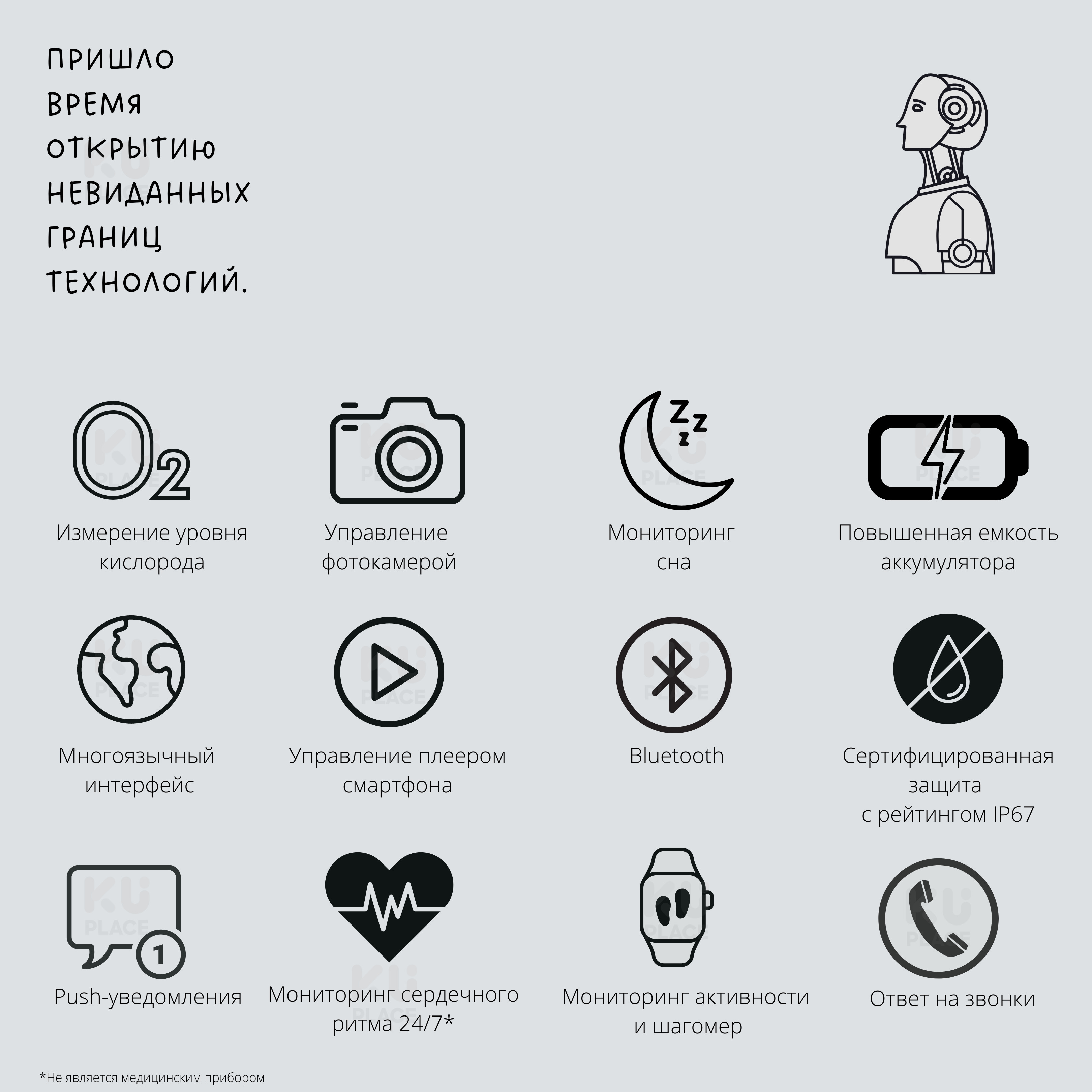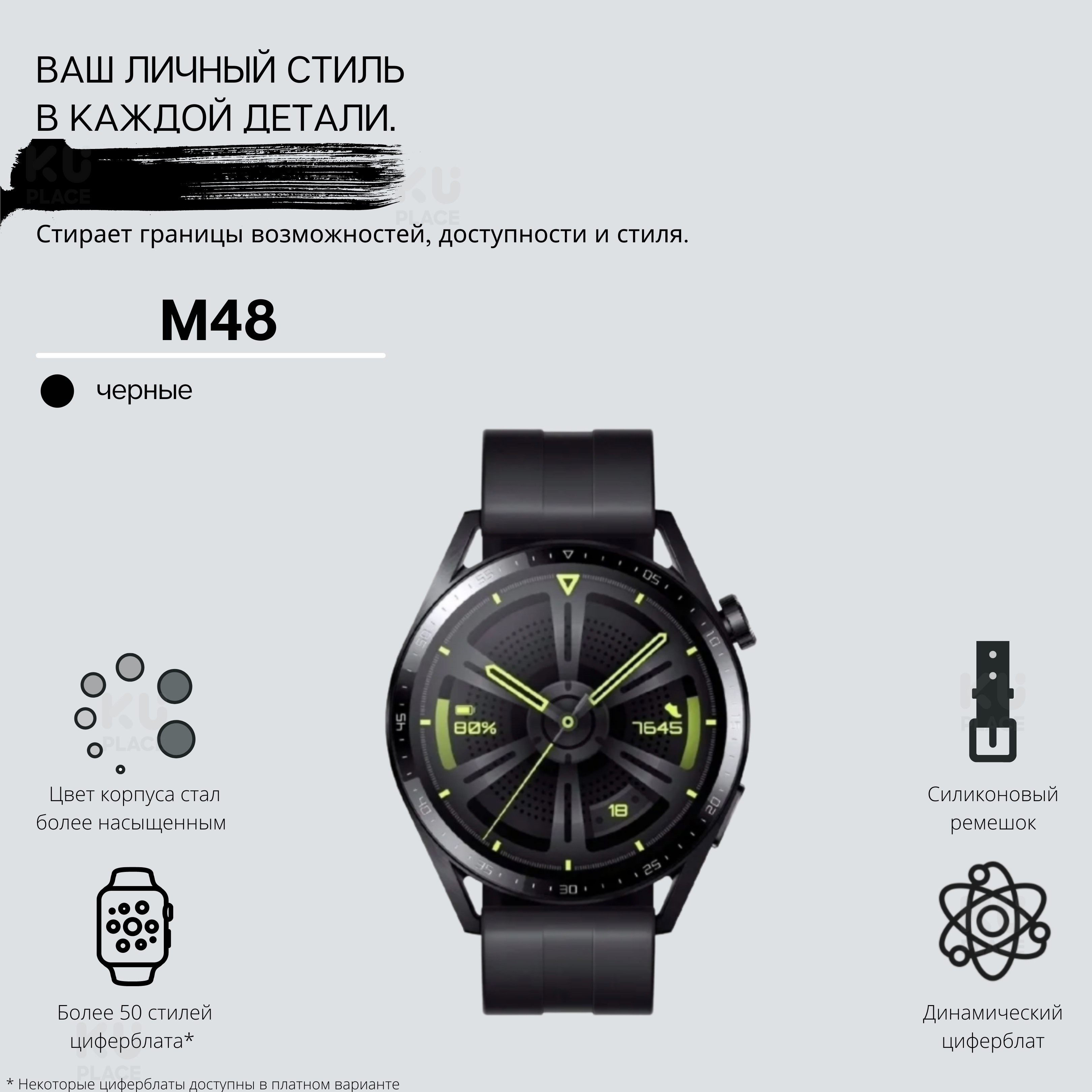 Умные часы KUPLACE / Smart Watch M48 / Смарт-часы M48 с беспроводной зарядкой / Смарт вотч M48, 42mm, Черный