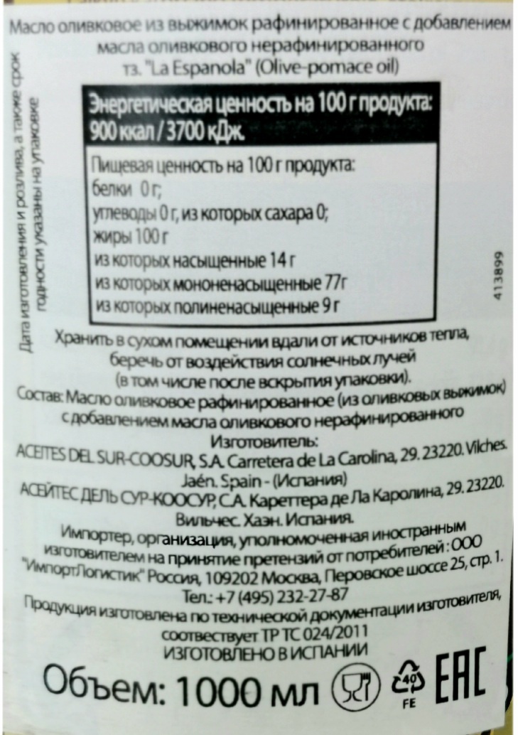 Масло "La Espanola" оливковое, 1л