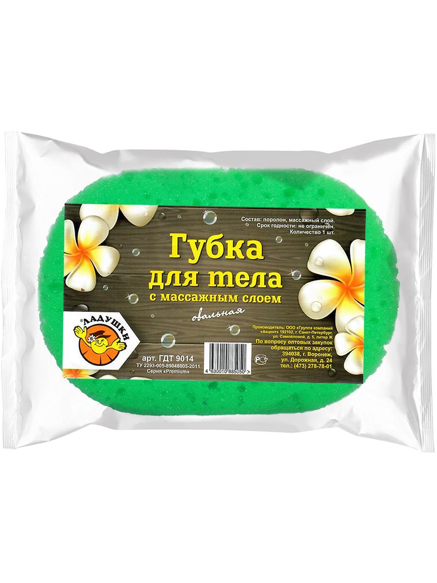 Ладушки Губка для тела с массажным слоем, овальная, цвет зеленый