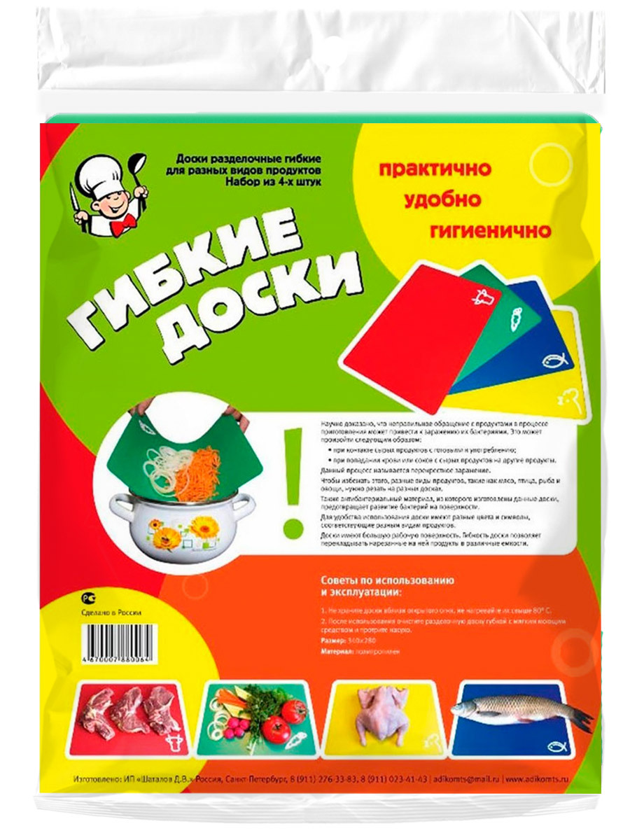 Набор гибких досок разделочных пластик 4шт. 34*28см