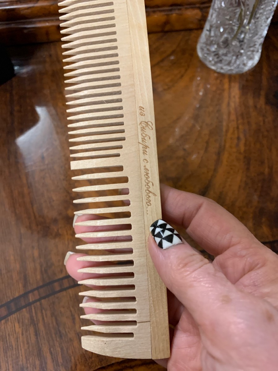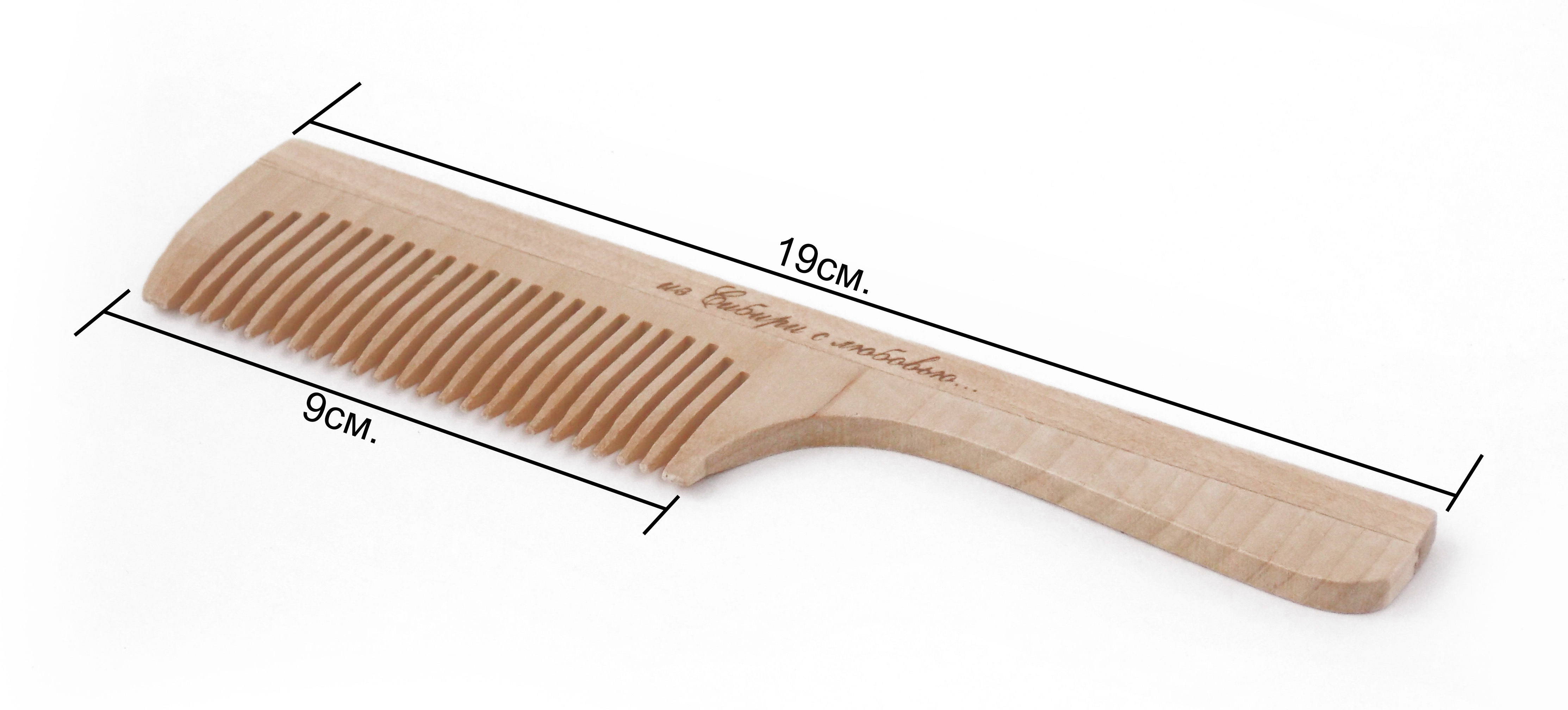 Расческа деревянная, с ручкой, "из Сибири с любовью", 19см, цвет бежевый
