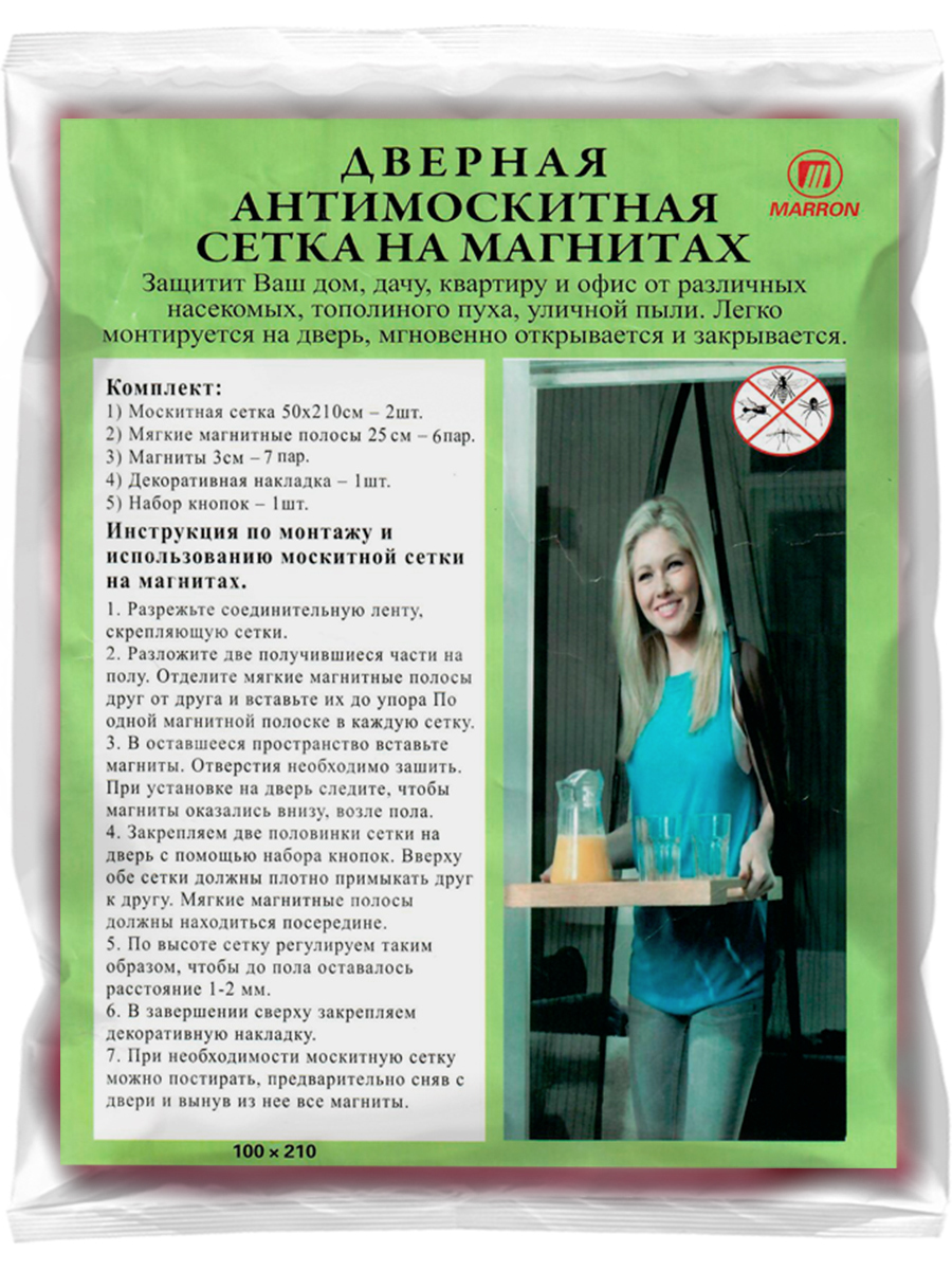 Сетка антимоскитная дверная на магнитах 210*100см, цвет вишневый