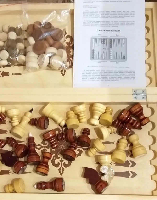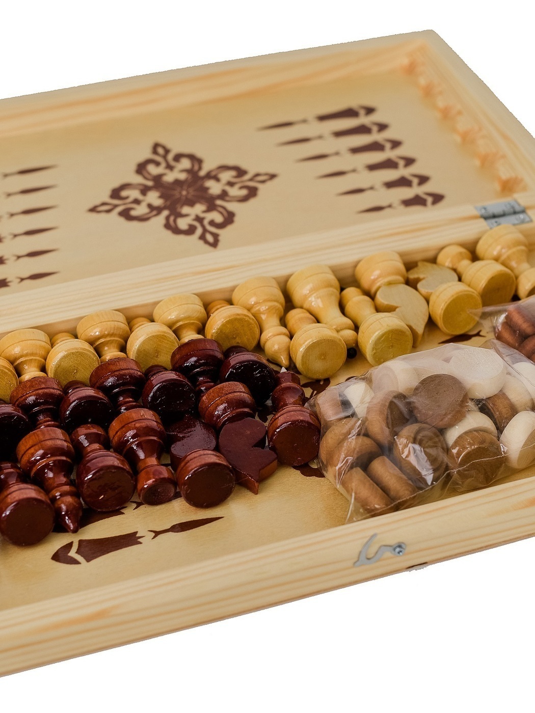 Настольная игра ООО "Ладья-С" Игра 3 в 1 нарды, шашки, карты (400x200x55)