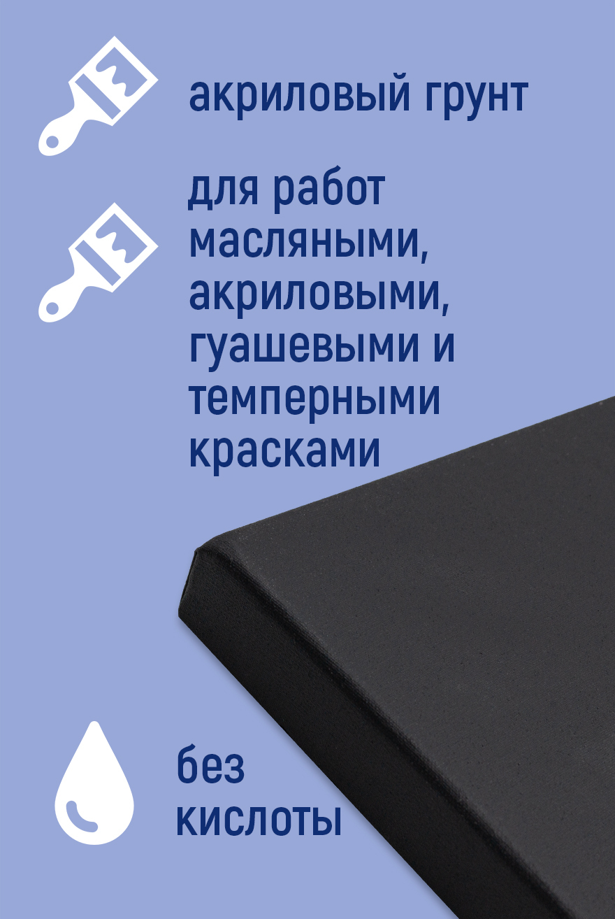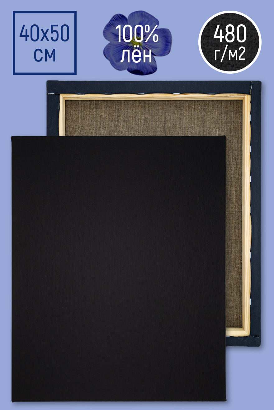 Холст LaKarti льняной для рисования, художественный, 40х50, черный акриловый грунт, 480г/м