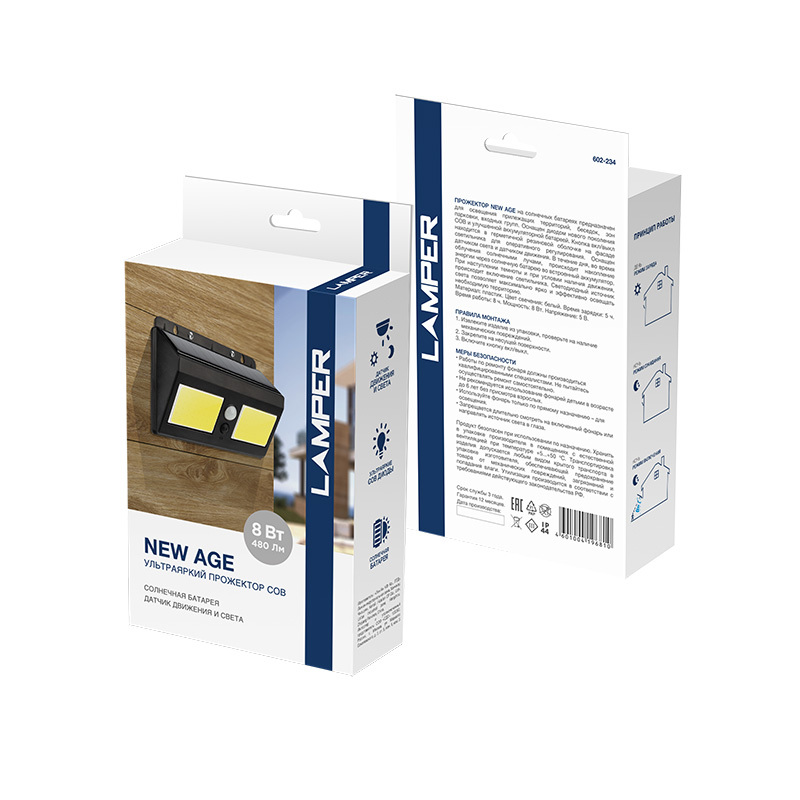 LED светильник настенный на солнечных батареях с датчиком движения Lamper 602-210