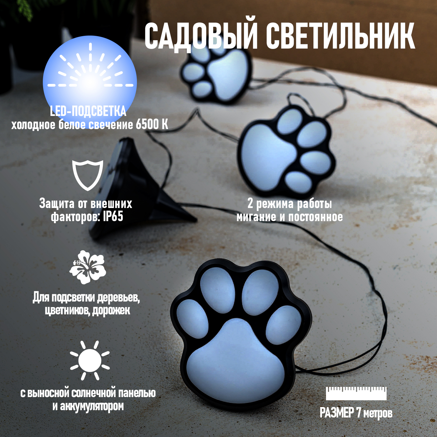 Садовый светильник на солнечной батарее, рассеянное белое свечение