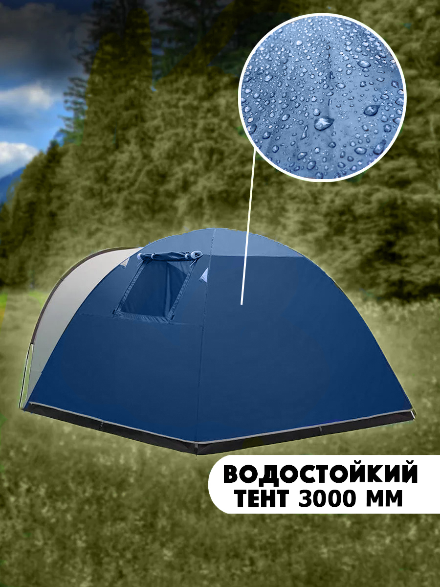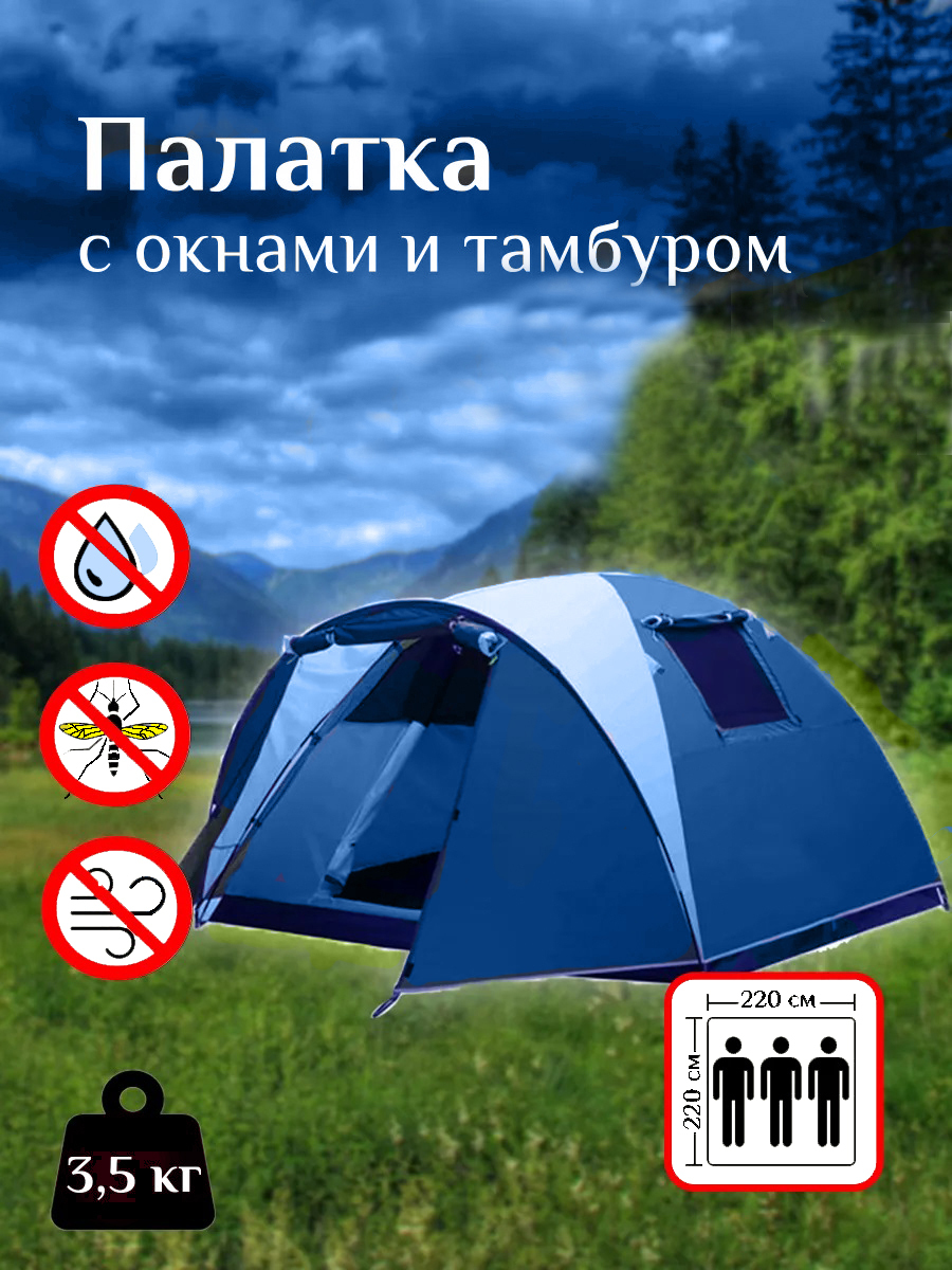 Палатка 6004 туристическая, 210X210X135, в сумке-чехле, вмещает до 3-х человек