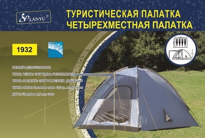 ПАЛАТКА 4-Х МЕСТНАЯ ТУРИСТИЧЕСКАЯ LANYU LY-1932