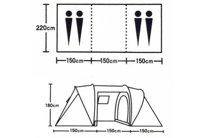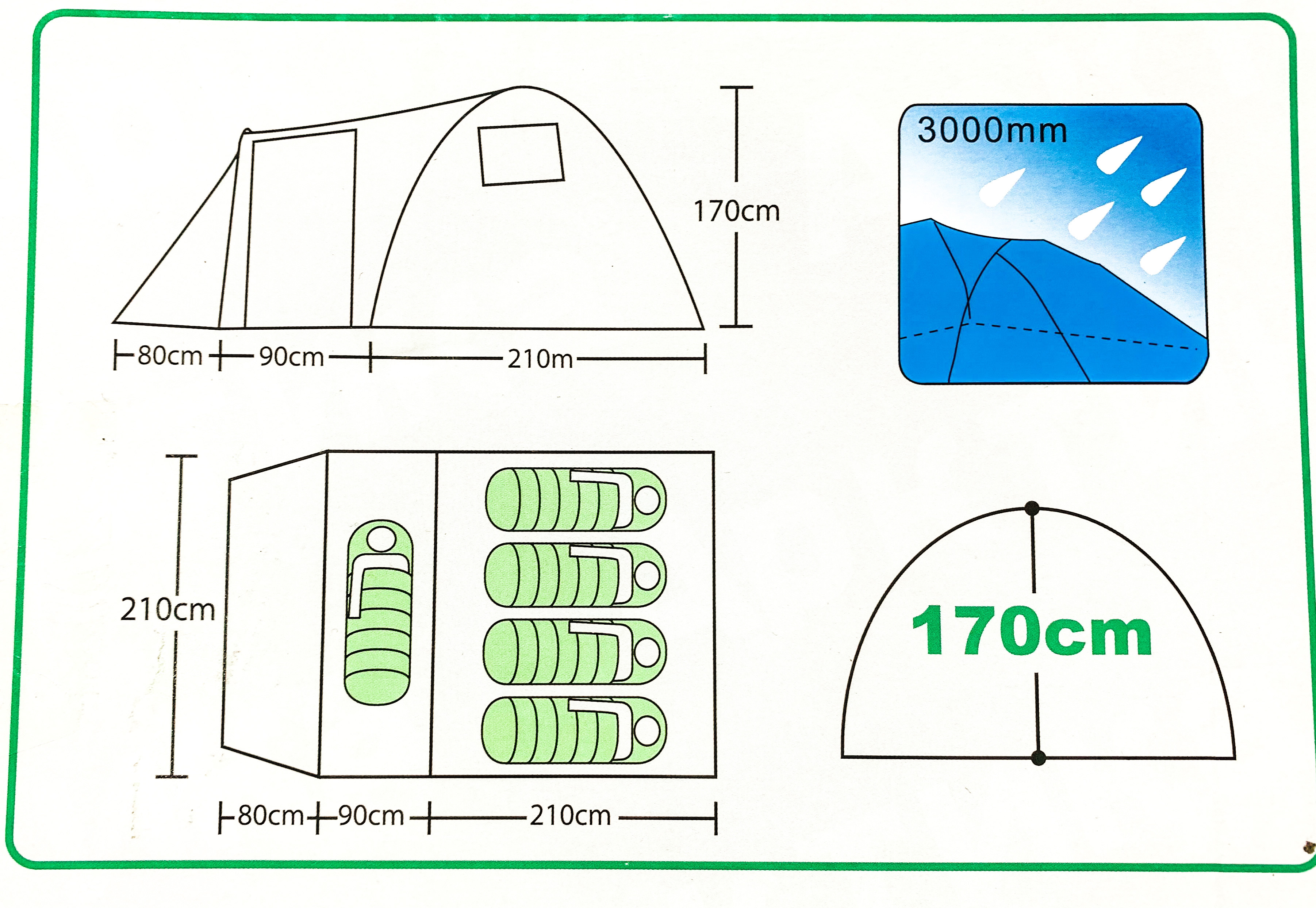 Палатка 4-местная LANYU пятиместная с тамбуром, арт. 278 (80+90+210см) *210см *h170см