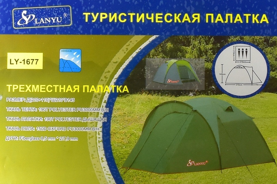 Палатка 3-местная LANYU туристическая, влагостойкая, для туризма