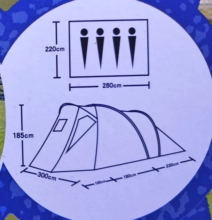 Палатка 4-местная LANYU туристическая с тамбуром арт. 2788 ( 150+150+150)*220*180см
