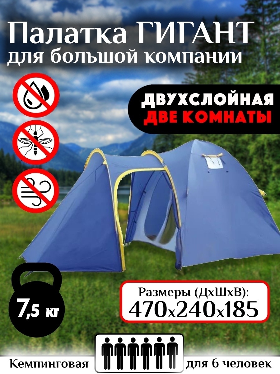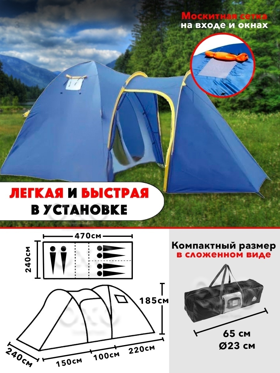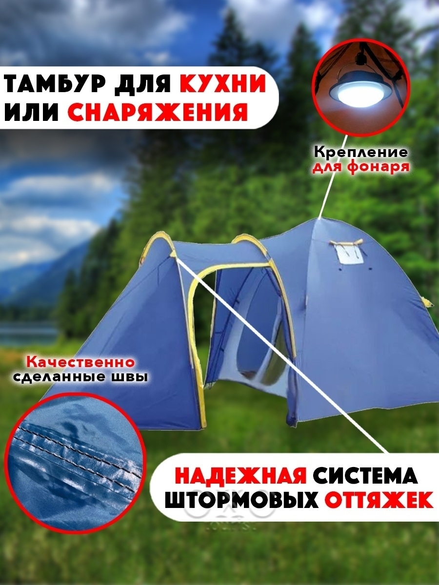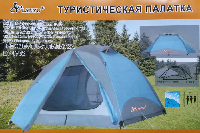 Палатка 3-местная LANYU туристическая, влагостойкая, для туризма