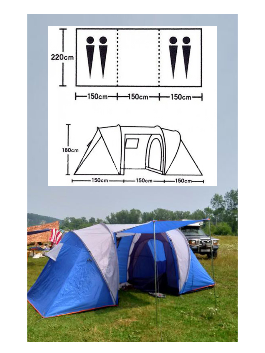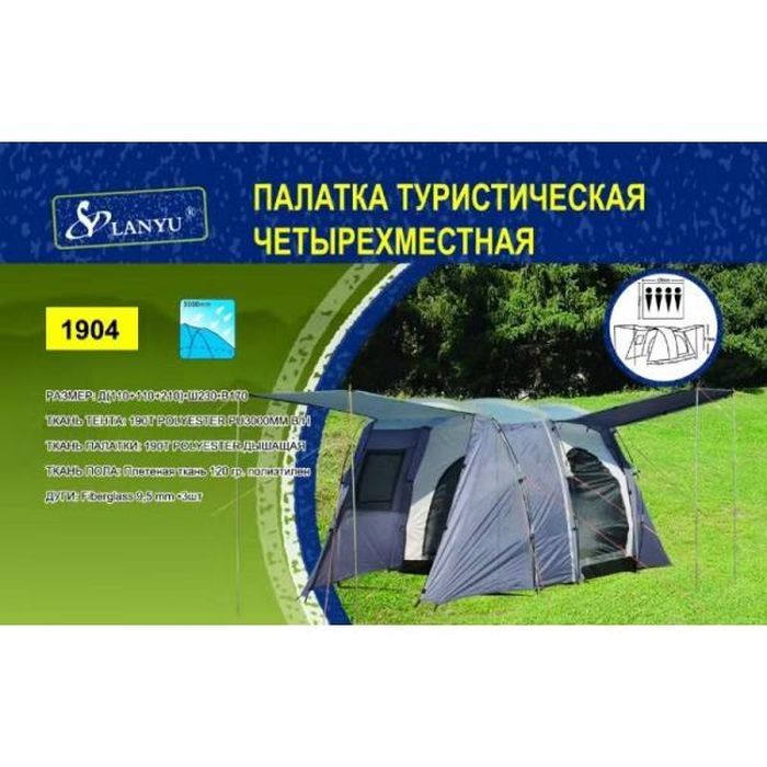 Палатка туристическая четырёхместная двухкомнатная LANYU LY-1699