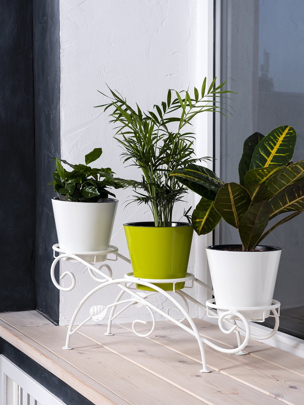 Подставка для растений из кованого металла для трех кашпо, Laptev, цвет белый