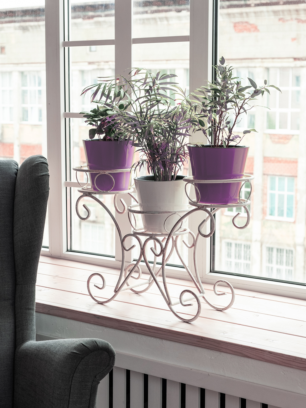 Подставка для растений из кованого металла напольная, Laptev, цвет белый