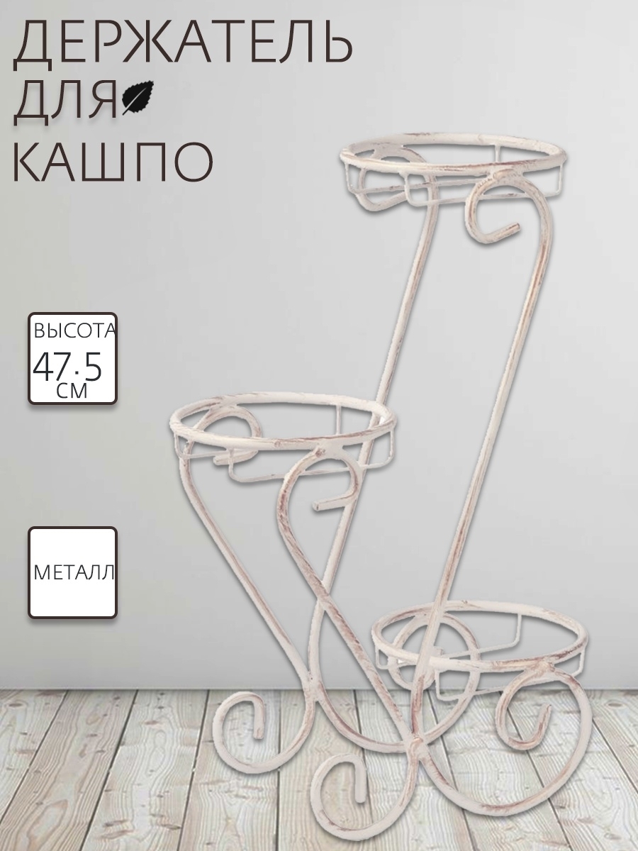 Подставка для трех кашпо напольная из кованого металла, Laptev, цвет белый, бронзовый