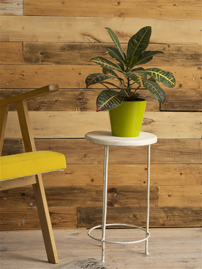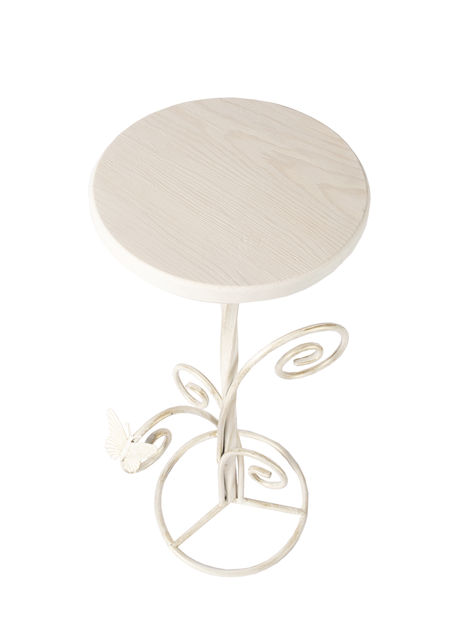 Подставка напольная из металла и дерева "Лофт Круг", Laptev, цвет белый, золотой