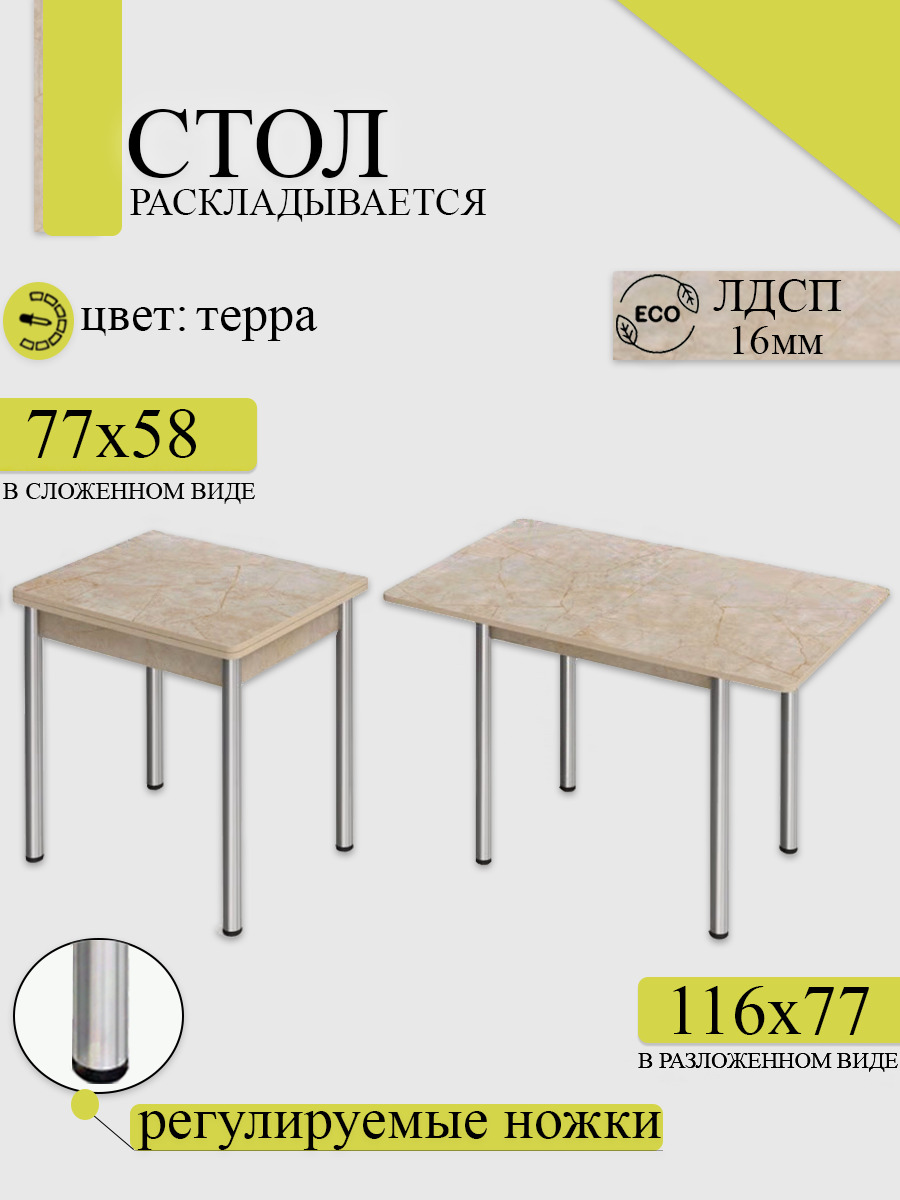Стол обеденный Откидной К/Столраскл1/, 80х60х78 см