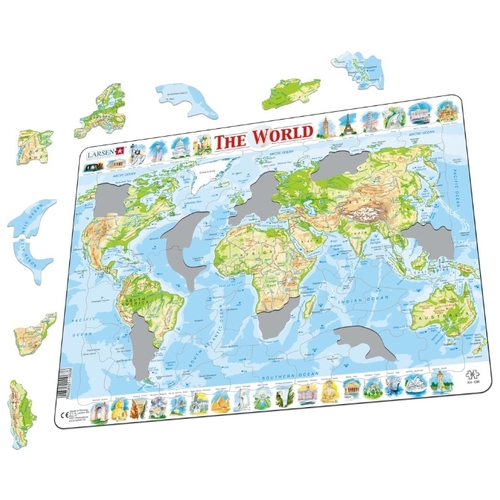 Рамка-вкладыш Larsen Карта мира с животными (A34), 28 дет.