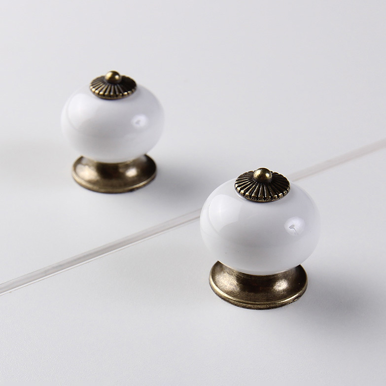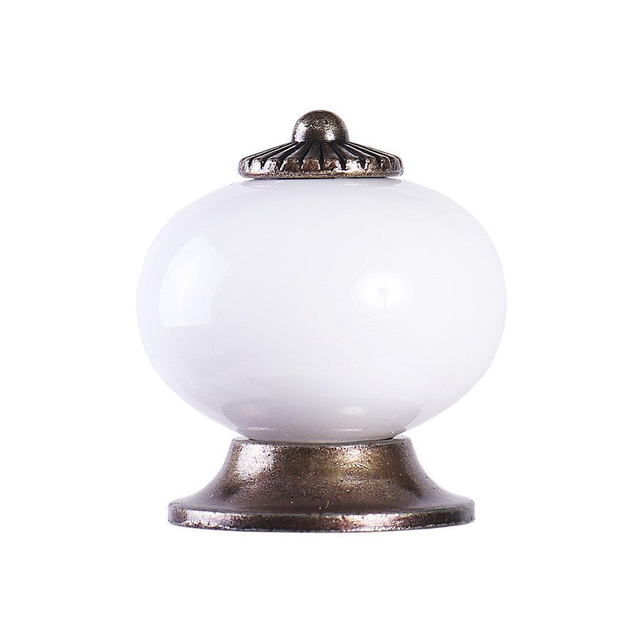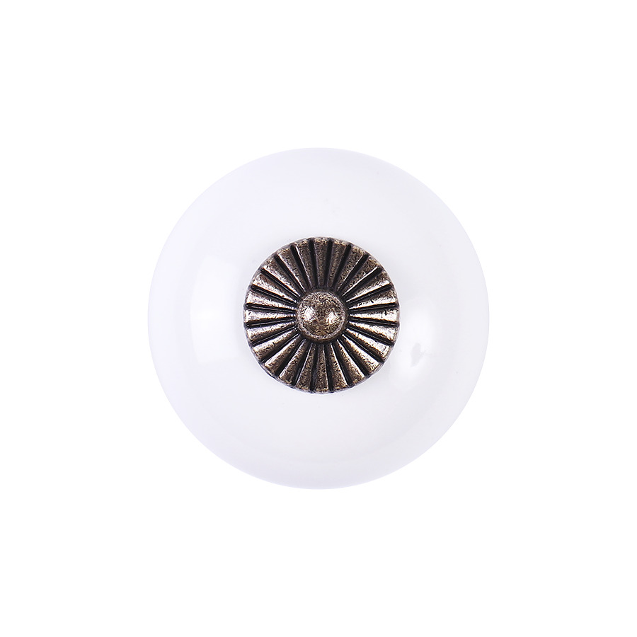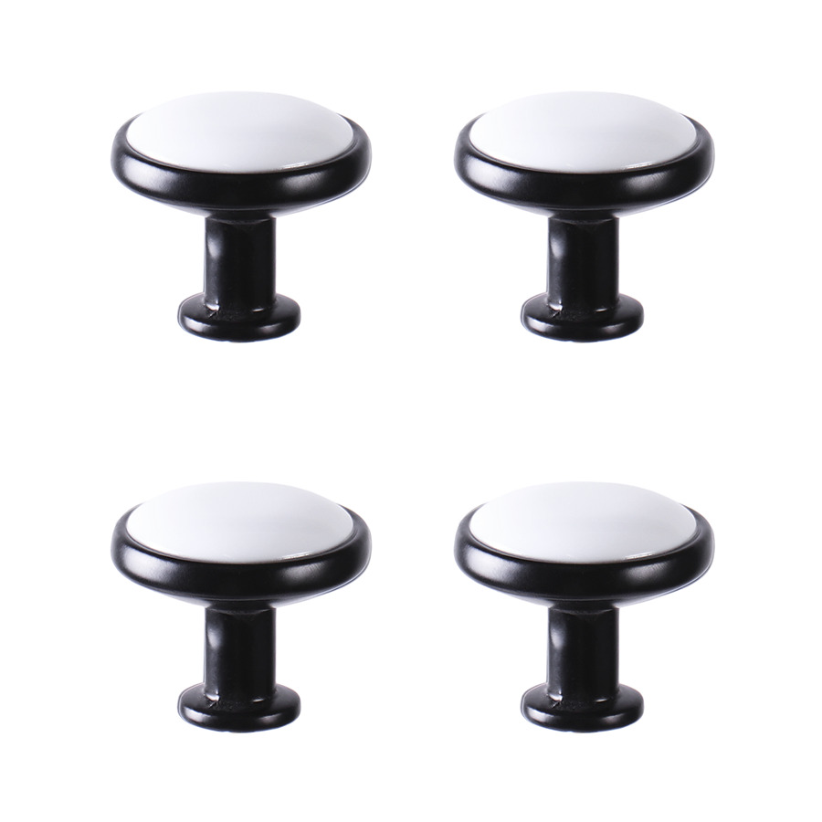 Ручки мебельные 4 шт. кнопка цинковый сплав/керамика белые с золотом