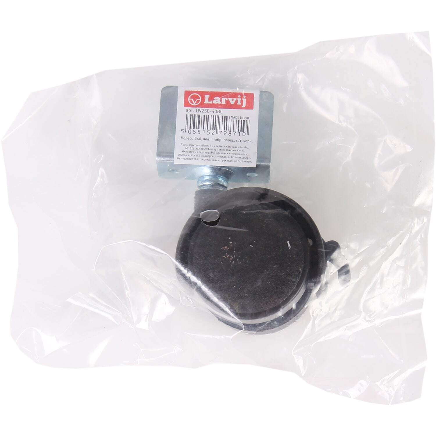 Колесо поворотное, с тормозом угловое крепление LW2SB-40B 40 мм, до 50 кг, цвет черный