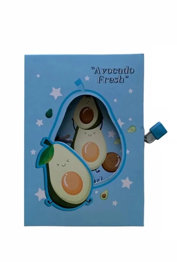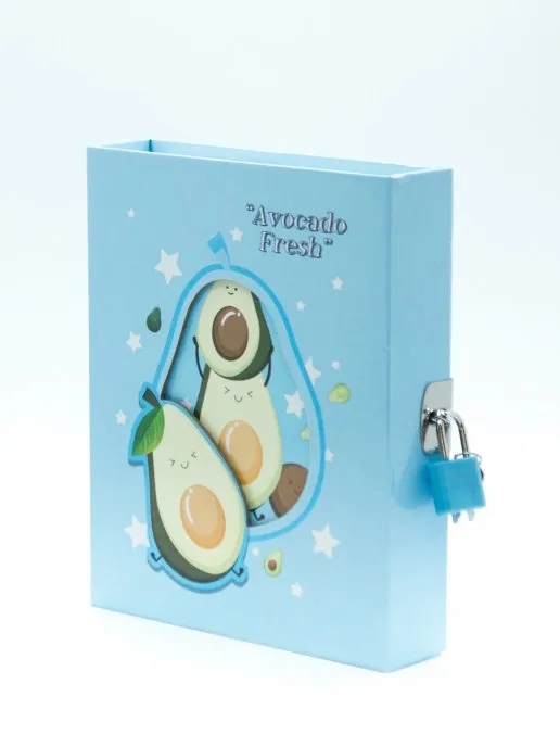 Блокнот с замочком в подарочной коробке "Авакадо", цвет голубой