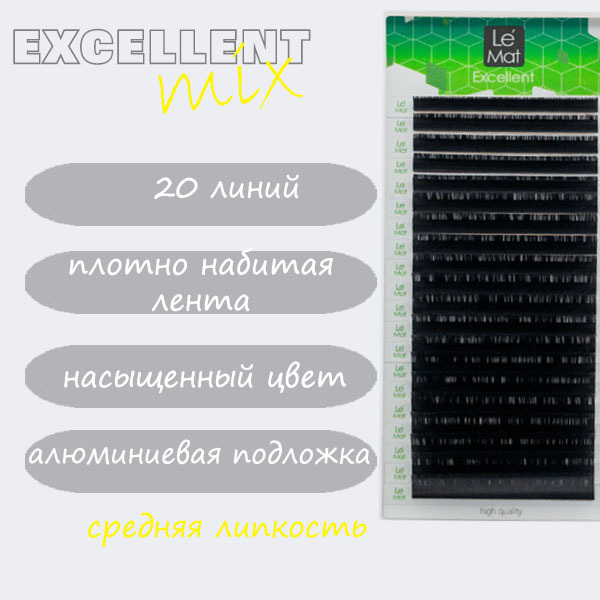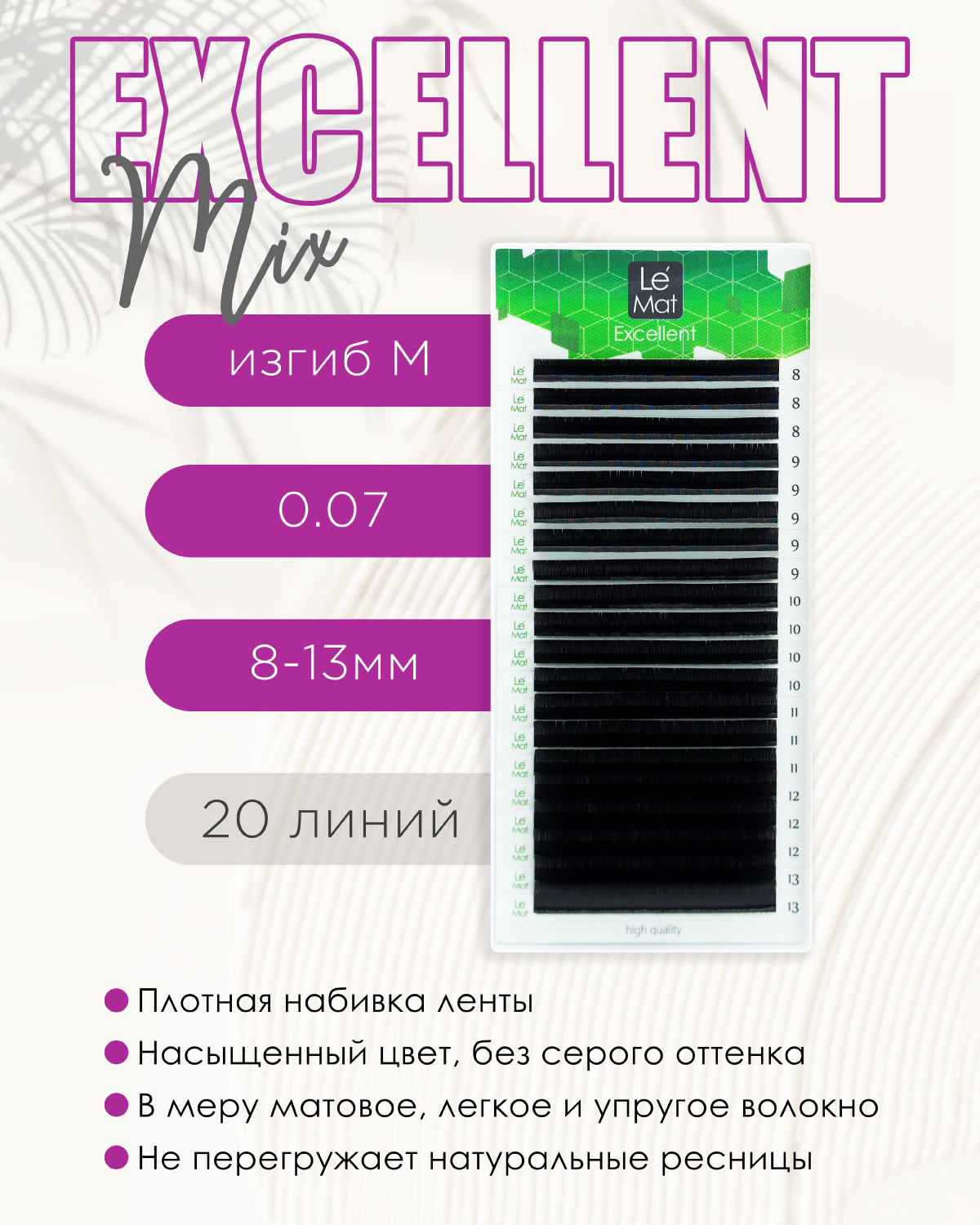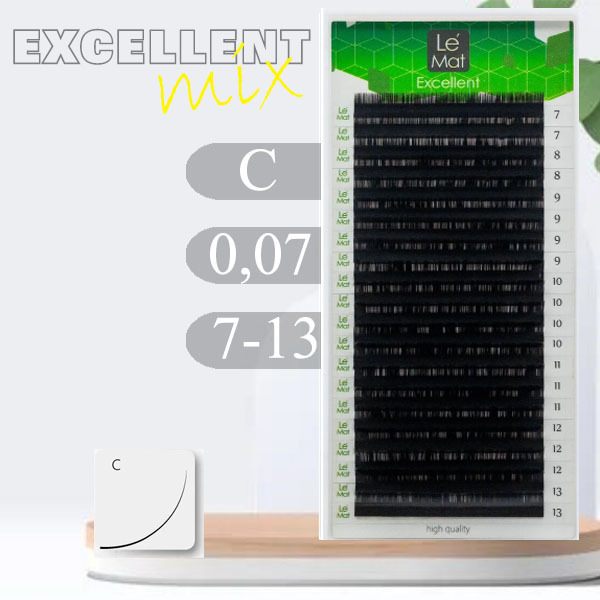 Le Maitre (Le Mat) Ресницы для наращивания черные "Excellent" 20 линий mix C 0.07 7-13