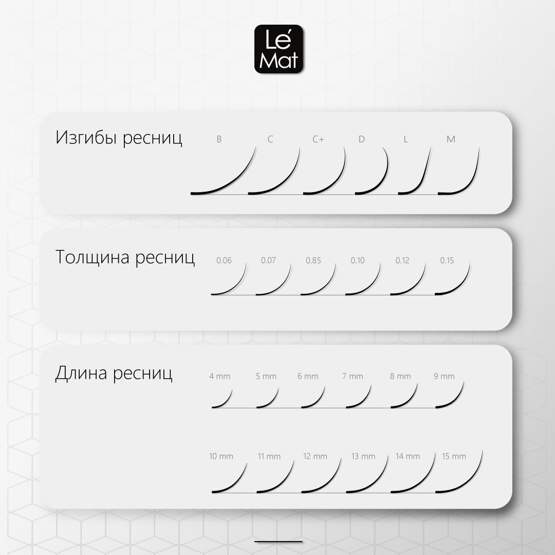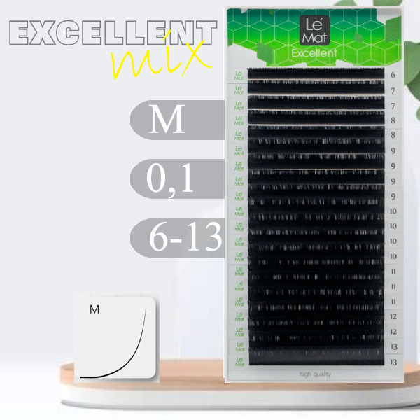 Le Maitre (Le Mat) Ресницы для наращивания черные "Excellent" 20 линий M 0.10 MIX 6-13 mm