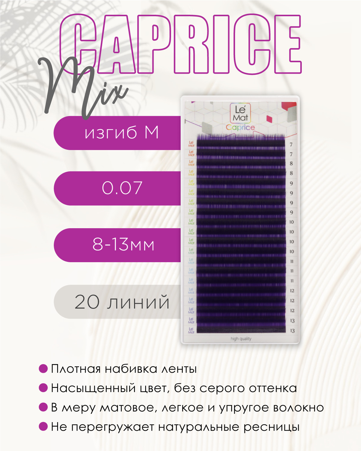 Le Maitre (Le Mat) ресницы для наращивания цветные "Caprice" Violet 20 линий M 0.07 MIX 8-13 mm