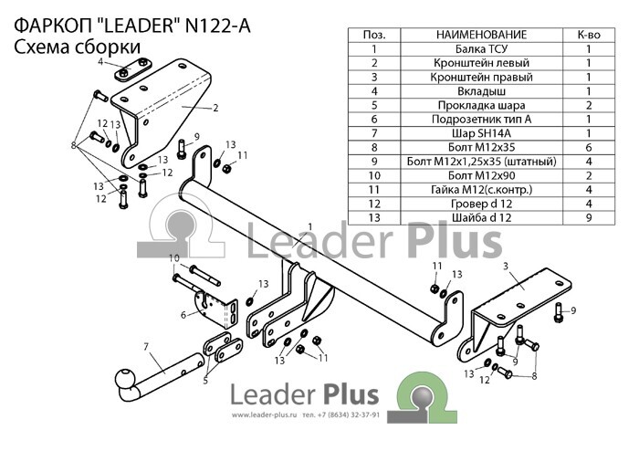 Фаркоп Leader Plus B204-A условно-съемный на 2-х болтах на BMW X5 II E70 (5dr.) SUV 2006-2013гг.