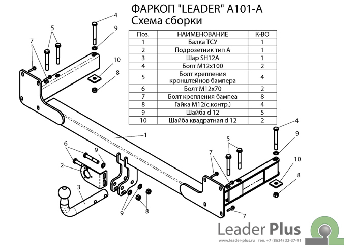 Leader-plus Фаркоп - прицепное устройство для Лифан X60