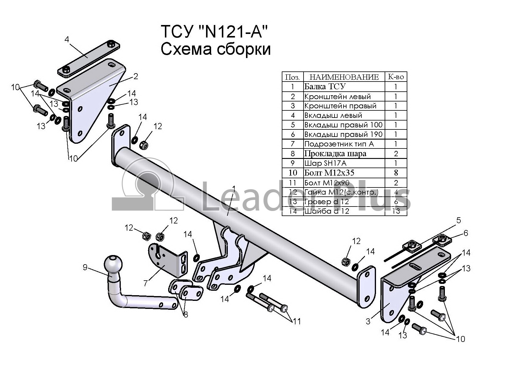 Фаркоп Leader Plus для MITSUBISHI L200 (KA0T) 2006-2013