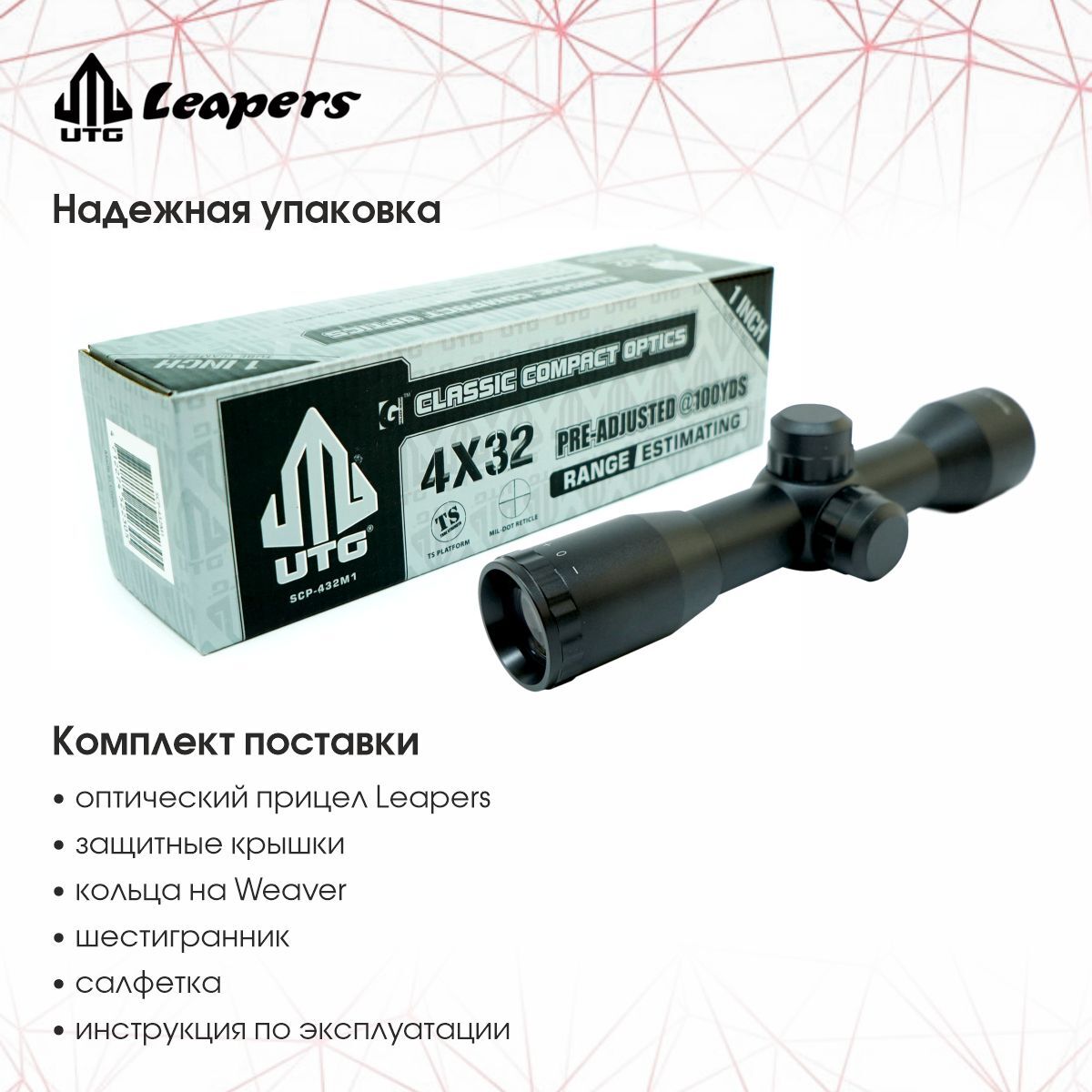 Прицел оптический LEAPERS Prism T4 CQB 4X32 Mil-dot, с крон. на Weaver