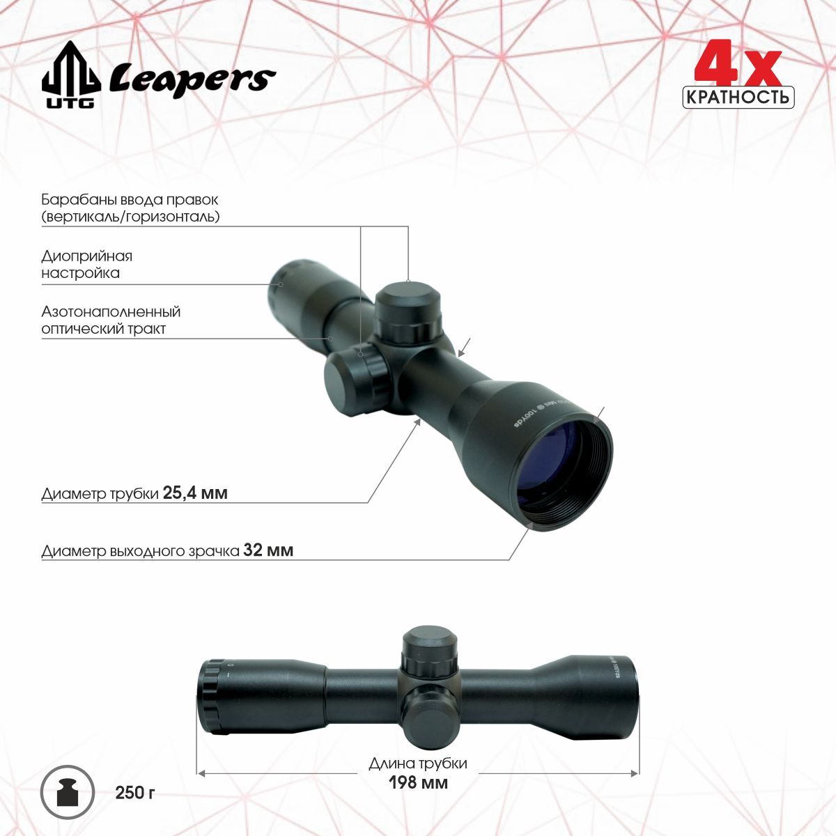 Прицел оптический Leapers 4x32 UTG Mini, сетка крест с делением