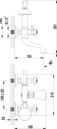 Смеситель Lemark Vintage LM2812B для ванны с душем