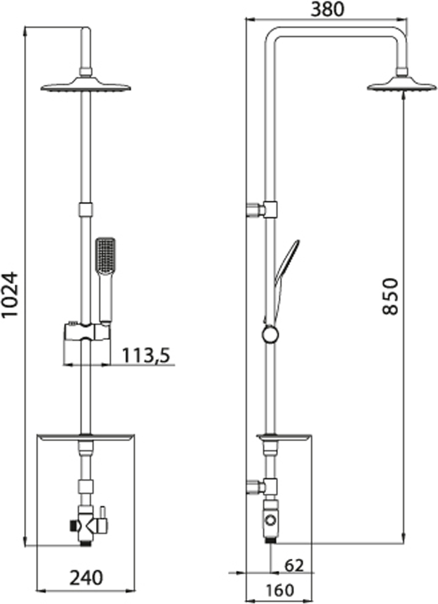 Душевой гарнитур "Тропический дождь" с фиксированной высотой штанги и верхней душевой лейкой Lemark